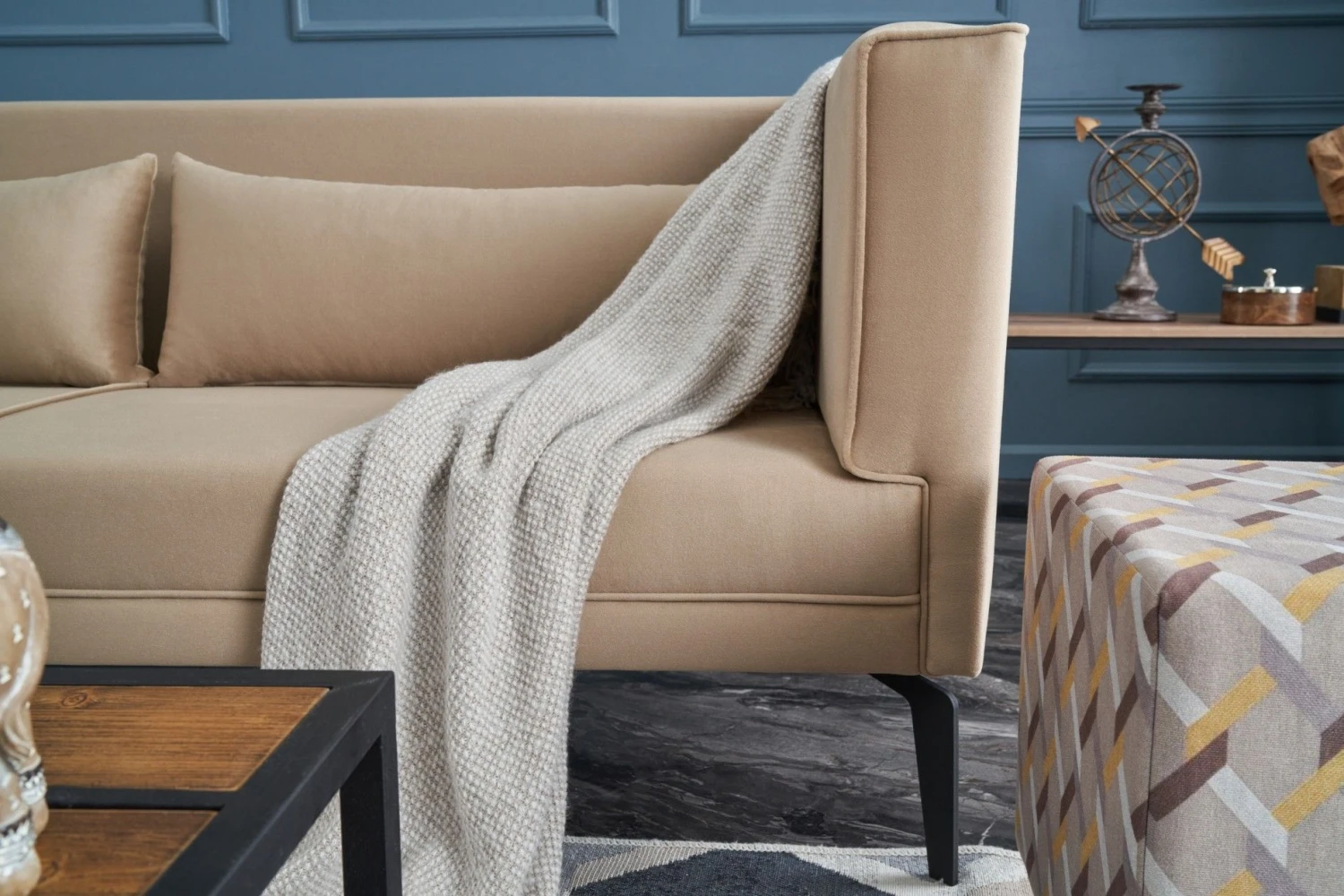 Verfraai je woonkamer met deze 3-zitsbank. Met zijn beukenhouten frame en fluwelen stof biedt hij zowel comfort als stijl. Inclusief kussens!