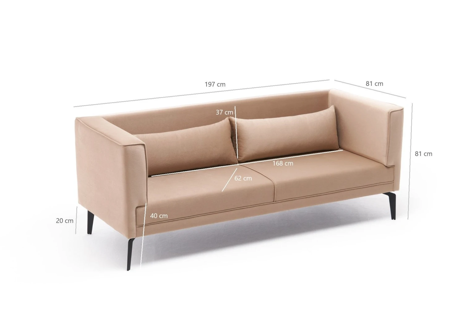 Maak kennis met de perfecte aanvulling voor je woonkamer: de 3-zitsbank! Deze prachtige sofa is ontworpen om de ster van uw ruimte te zijn en biedt zowel comfort als een uniek ontwerp dat uw interieur direct zal opwaarderen.Een van de belangrijkste kenmerken van deze 3-zitsbank is de combinatie van functie en mode. Hij biedt niet alleen een comfortabele zitplaats voor jou en je gasten, maar voegt ook een vleugje stijl toe aan elke kamer. Of je nu de voorkeur geeft aan een moderne, minimalistische look of een meer traditionele esthetiek, deze bank is een perfecte match.Het frame van deze bank is gemaakt van beukenhout van hoge kwaliteit, waardoor stevigheid en duurzaamheid gegarandeerd zijn. Beukenhout staat bekend om zijn stevigheid en het vermogen om zwaar gebruik te weerstaan, waardoor deze bank een duurzame investering voor je huis is.De stof die voor deze 3-zitsbank is gebruikt, is 100% polyester fluweel, wat een luxe en elegante touch toevoegt aan het algehele ontwerp. Fluweel is een zeer gewilde stof, bekend om zijn zachtheid en pluche textuur. Het ziet er niet alleen geweldig uit en voelt geweldig aan, maar is ook gemakkelijk te onderhouden en schoon te maken, waardoor het een praktische keuze is voor dagelijks gebruik.Om het strakke ontwerp van deze bank verder te verbeteren, wordt hij geleverd met metalen poten die een eigentijds tintje toevoegen. Met een breedte van 197 cm, een hoogte van 76 cm en een diepte van 81 cm biedt deze 3-zitsbank veel zitruimte voor jou en je geliefden om te ontspannen en tot rust te komen. De zitdiepte van 62 cm en zithoogte van 40 cm zorgen voor optimaal comfort voor urenlang loungen.Wat deze bank apart maakt is het 28 DNS en 12 cm veren schuim dat gebruikt wordt voor het zitten. Deze combinatie van materialen zorgt voor een zachte maar ondersteunende ervaring, waardoor je in de bank kunt wegzakken terwijl je toch geniet van de nodige rug- en lendensteun. De rugkussens zijn gemaakt van hoogwaardig partikelschuim, wat zorgt voor maximaal comfort en een ergonomische zitervaring.Schoonmaken is een fluitje van een cent met deze 3-zitsbank, dankzij de easy-clean stof. Veeg gemorste vloeistoffen en vlekken gewoon weg en uw bank ziet er weer als nieuw uit. Deze functie is vooral handig voor mensen met kinderen of huisdieren, want ongelukjes gebeuren nu eenmaal.Om de look af te maken en extra gezelligheid toe te voegen, wordt deze bank geleverd inclusief kussens. De crèmekleur van de bank voegt een vleugje verfijning toe.