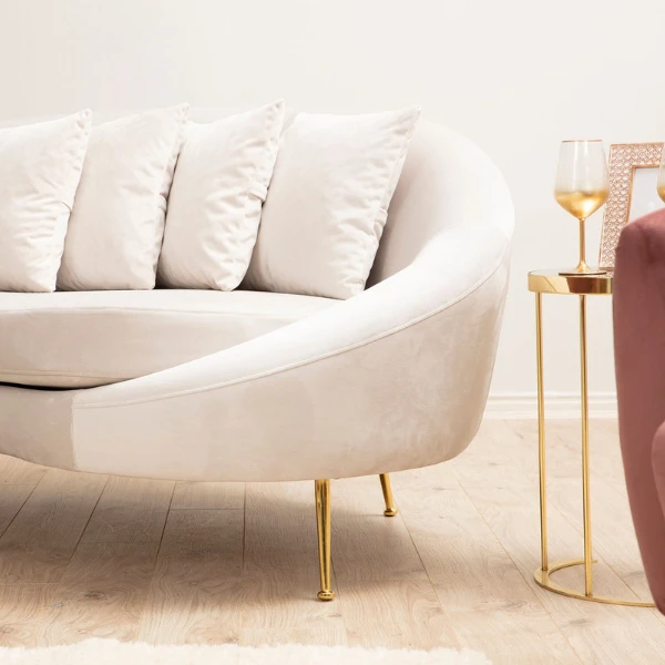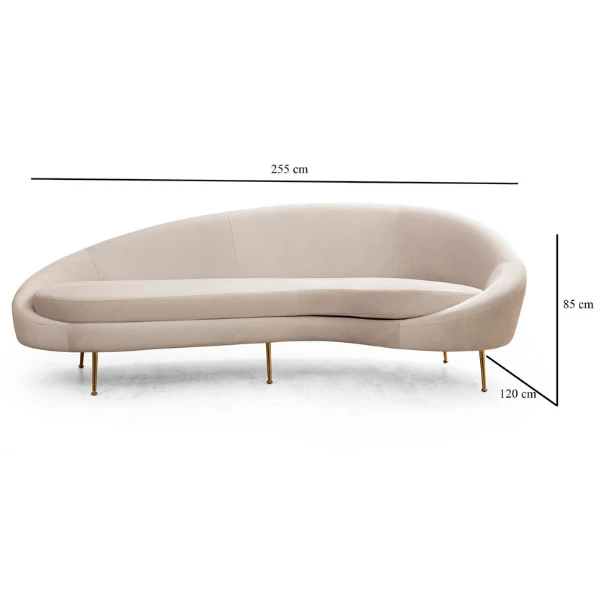 Maak kennis met onze 3-zitsbank, de perfecte combinatie van comfort en stijl voor je woonkamer. Het unieke ontwerp en het beukenhouten frame zullen je ruimte opfrissen. Met een afmeting van 255cm x 120cm x 85cm en 100% polyester stof, biedt deze bank zowel functie als mode. Hij wordt geleverd inclusief zachte kussens van grijs schuim/leer en 2 kussens. De chemisch te reinigen stof en de goudkleurige metalen poten in beige geven deze ster van een sofa de finishing touch!