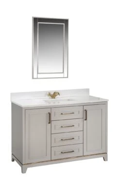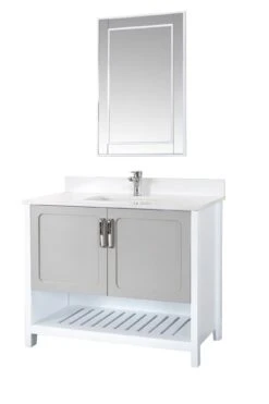 Jussara Badkamermeubelset – 2 Delen | 100% Massief Hout | Witte Kwarts Werkblad | Flotal Spiegel