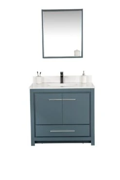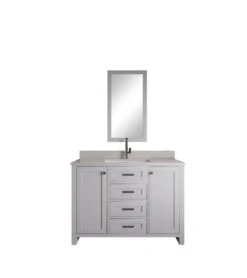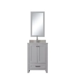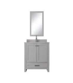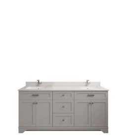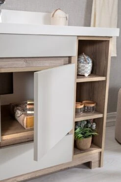 Jussara Badkamermeubelset | Grijs | 3-delig | 100% Massief Hout | Aanrechtblad Van Wit Kwarts