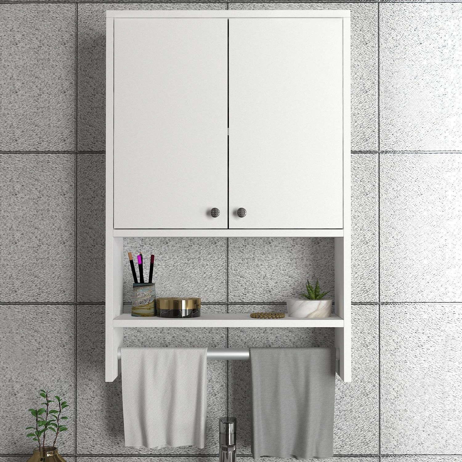 Maak kennis met Furny Home, jouw ultieme oplossing voor stijlvolle en functionele badkamermeubels. Onze met zorg en precisie vervaardigde 100% gemelamineerde spaanplaat kasten zijn ontworpen om de esthetische aantrekkingskracht en functionaliteit van je badkamerruimte te verhogen. Laat ons je meenemen door de belangrijkste kenmerken en voordelen waarmee Furny Home zich onderscheidt van andere badkamermeubels op de markt.Eerst en vooral zijn onze badkamermeubels gemaakt van hoogwaardig 18 mm dik gemelamineerd spaanplaat. Deze stevige constructie zorgt voor duurzaamheid en een lange levensduur, zodat u kunt genieten van uw kast zonder zorgen over slijtage. De dikte van 18 mm voegt ook stabiliteit toe, waardoor de kast bestand is tegen kromtrekken of buigen bij dagelijks gebruik.Bij Furny Home begrijpen we het belang van esthetiek in je badkamer. Daarom zijn onze badkamermeubels uitgevoerd in een strakke en tijdloze witte kleur, die moeiteloos aansluit bij elke bestaande badkamerinrichting of kleurenschema. De witte afwerking straalt een gevoel van netheid en frisheid uit, wat de algehele uitstraling van je badkamer verbetert.Een van de opvallende kenmerken van de badkamermeubels van Furny Home is de ruime opbergruimte die ze bieden. Met een breedte van 59 inch bieden deze kasten voldoende ruimte om al je badkamerbenodigdheden, van toiletartikelen tot handdoeken, georganiseerd op te bergen. Het ruime interieur zorgt ervoor dat alles netjes opgeborgen is, waardoor je badkamer opgeruimd en visueel aantrekkelijk blijft. Bovendien zijn onze kasten ontworpen met functionaliteit in het achterhoofd. Elke kast is uitgerust met verstelbare planken, zodat je de opbergruimte kunt aanpassen aan je behoeften. Deze flexibiliteit is vooral handig als je grotere items wilt opbergen of de planken naar wens wilt rangschikken. Investeren in Furny Home badkamermeubels verbetert niet alleen de esthetiek en functionaliteit van je badkamer, maar voegt ook waarde toe aan je huis. Het tijdloze ontwerp en de duurzame constructie garanderen tevredenheid op de lange termijn, waardoor het op de lange termijn een verstandige investering is. Kortom, de badkamermeubels van Furny Home in 100% gemelamineerde spaanplaat combineren stijl, duurzaamheid en functionaliteit. De dikte van 18 mm zorgt voor een stevige en robuuste structuur, terwijl de witte kleur een vleugje elegantie toevoegt aan je badkamer. Met voldoende opbergruimte, verstelbare planken en eenvoudig onderhoud zijn deze kasten een praktische oplossing voor elke badkamer. Upgrade je badkamer vandaag nog met de hoogwaardige kwaliteitskasten van Furny Home en ervaar het plezier van een goed georganiseerde badkamer.