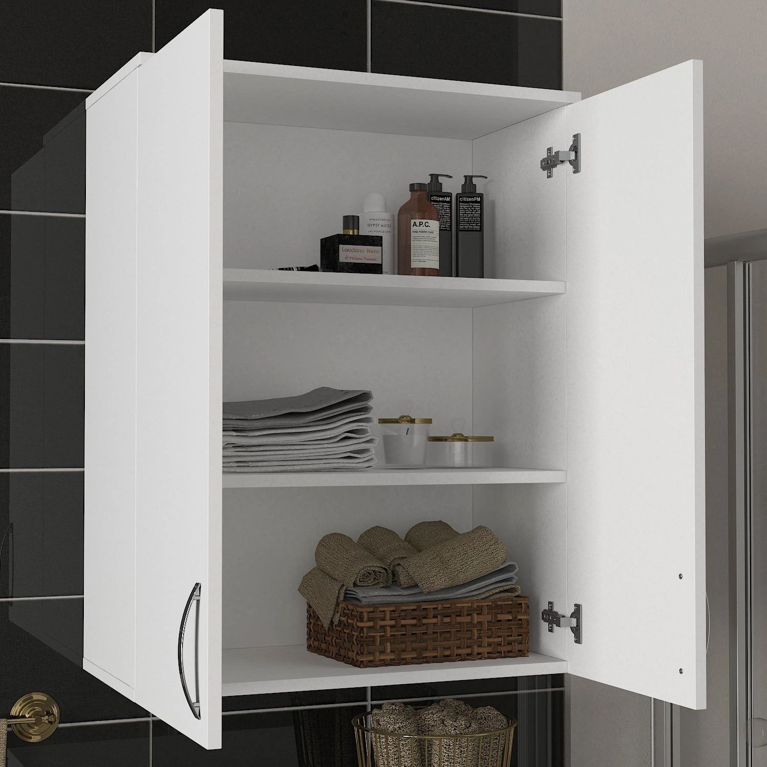 Maak kennis met het Woody Fashion badkamermeubel, een stijlvolle en functionele aanwinst voor elke badkamer. Deze kast is gemaakt van 100% gemelamineerd spaanplaat en is gemaakt om lang mee te gaan. Het badkamermeubel is 70 cm breed, 90 cm hoog en 34 cm diep en biedt voldoende opbergruimte voor al je badkamerbenodigdheden. Het compacte formaat maakt het geschikt voor zowel ruime badkamers als kleinere poederkamers. Het strakke en tijdloze ontwerp met de frisse witte kleur voegt een vleugje elegantie toe aan elke badkamerinrichting, of deze nu modern of traditioneel is.Een van de belangrijkste kenmerken van het Woody Fashion badkamermeubel is de melamine coating. Deze coating verbetert niet alleen de visuele aantrekkingskracht van het meubel, maar biedt ook een beschermende laag, waardoor het bestand is tegen water, vocht en vlekken. Dit zorgt voor een lange levensduur van de kast, zelfs in een vochtige omgeving zoals een badkamer. De 18 mm dikte van de kast zorgt voor stevigheid, waardoor hij het gewicht van badkamerartikelen zoals toiletartikelen, handdoeken en accessoires kan dragen. Je kunt erop vertrouwen dat deze kast na verloop van tijd goed blijft staan, zonder door te zakken of krom te trekken. Met zijn ruime interieur en verstelbare planken biedt het Woody Fashion badkamermeubel veelzijdige opbergmogelijkheden. Je kunt je handdoeken, toiletartikelen, schoonmaakspullen en meer gemakkelijk ordenen, zodat je een opgeruimde en georganiseerde badkamer hebt. Met de verstelbare planken kun je het interieur van de kast aanpassen aan je specifieke behoeften, waardoor het zeer handig is.De installatie is een fluitje van een cent met het Woody Fashion badkamermeubel. De montage-instructies zijn makkelijk te volgen en alle benodigde hardware is inbegrepen. Naast de praktische voordelen voegt het Woody Fashion badkamermeubel ook een vleugje elegantie toe aan de inrichting van je badkamer. De witte kleur past bij elk kleurenschema en voegt een strakke en tijdloze esthetiek toe aan je ruimte. Of je nu gaat voor een eigentijdse look of een meer traditionele sfeer, deze kast past naadloos in elke stijl.Kortom, de Woody Fashion Bathroom Cabinet biedt een perfecte combinatie van stijl en functionaliteit. De constructie van 100% gemelamineerd spaanplaat met een dikte van 18 mm garandeert duurzaamheid, terwijl de witte kleur een vleugje elegantie toevoegt aan je badkamer.