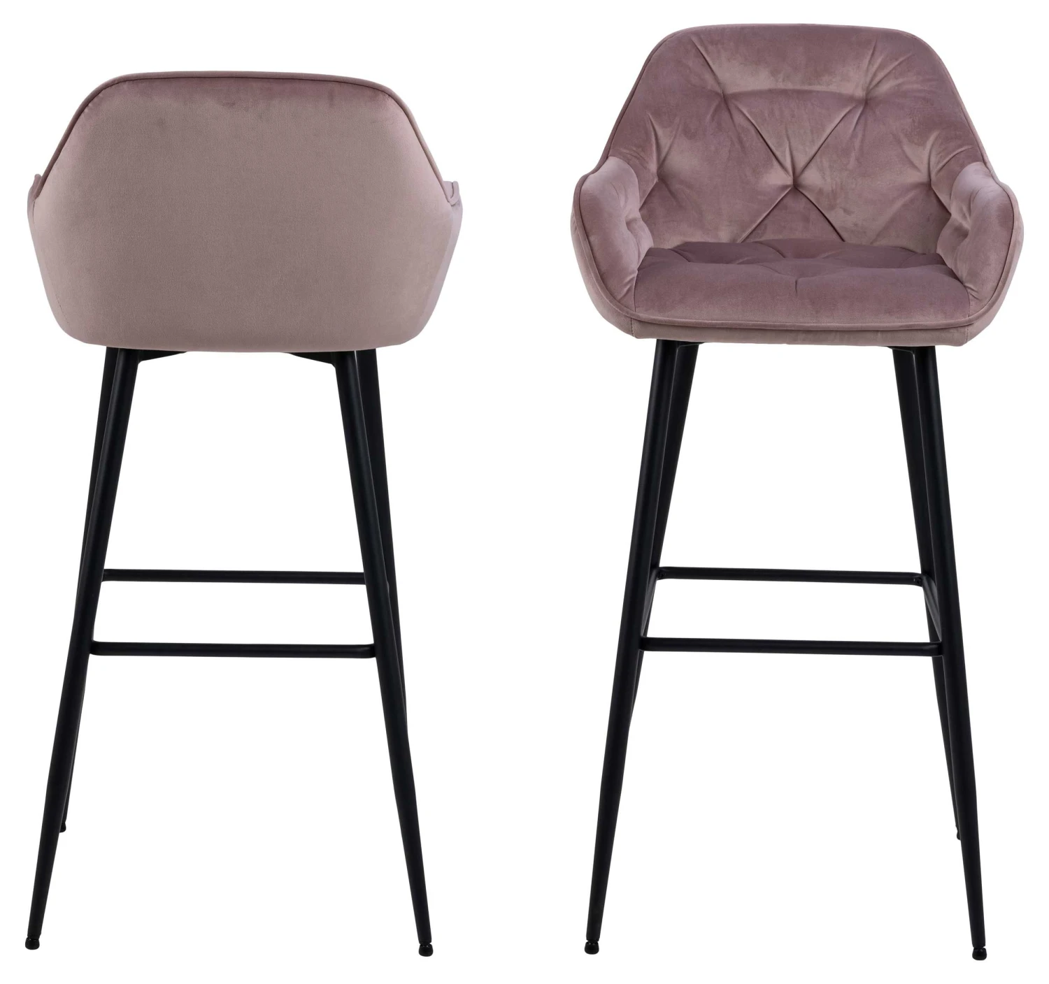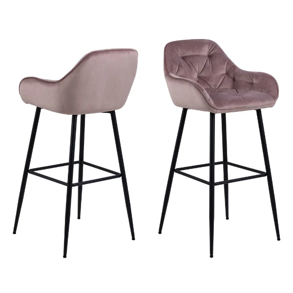 Barstoelen die je hetzelfde comfort bieden als een traditionele stoel zijn soms moeilijk te vinden. Tot nu! Deze barstoelen van de Bridget-collectie verhogen jouw zitcomfort dankzij de armleuningen, rugleuning en voetensteun. Bovendien zien ze er dankzij hun oudroze stoffen bekleding en details ook nog eens bijzonder luxueus uit. De matzwarte poten van gepoedercoat metaal maken het geheel helemaal af.