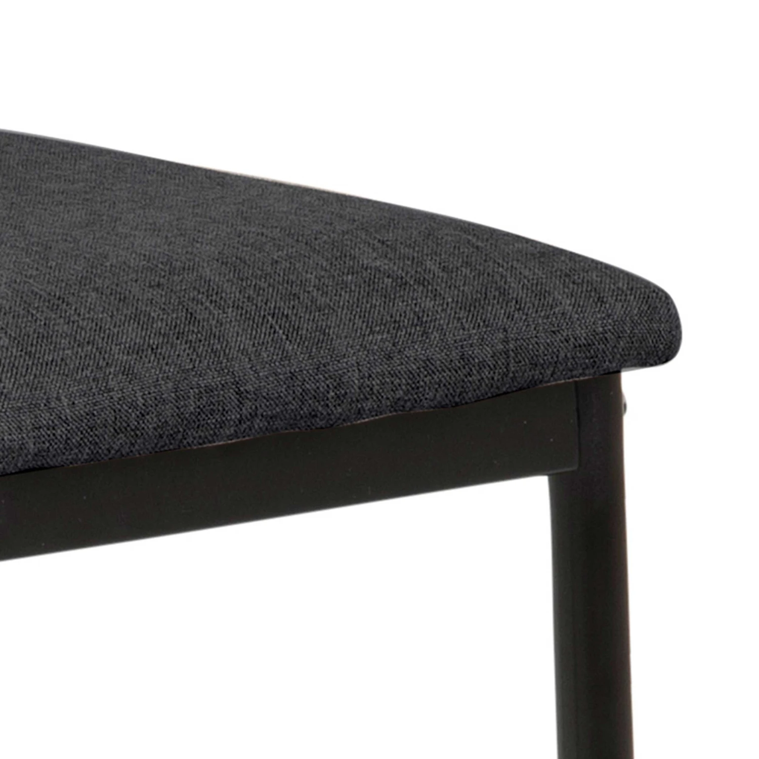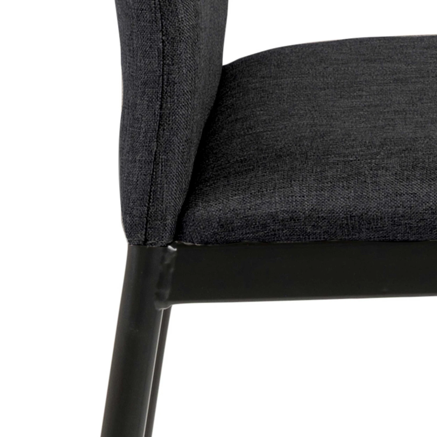stoffen bekleding en zwarte metalen poten. De stoel is uitgerust met een