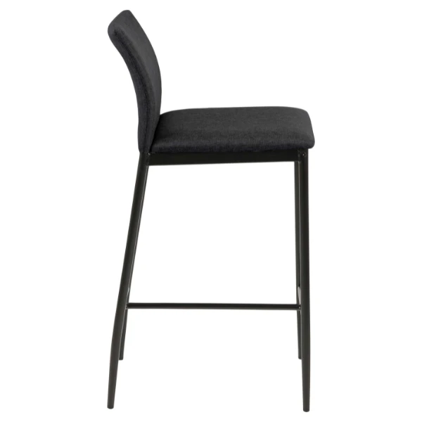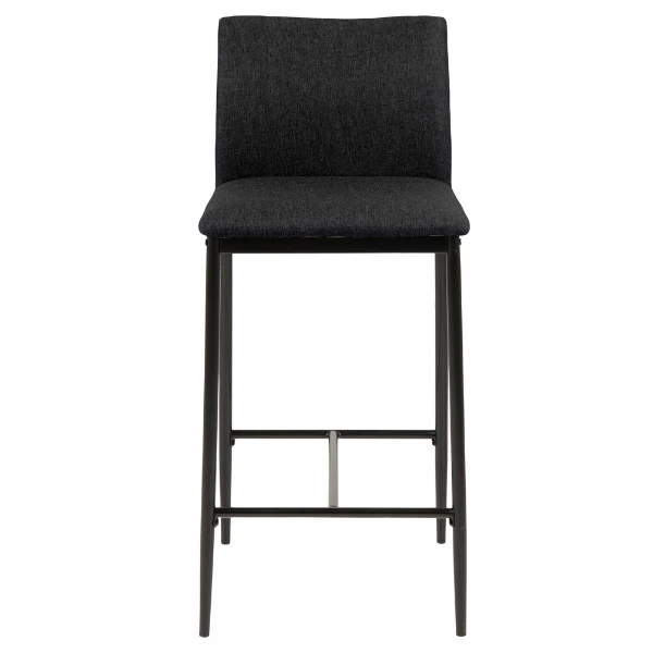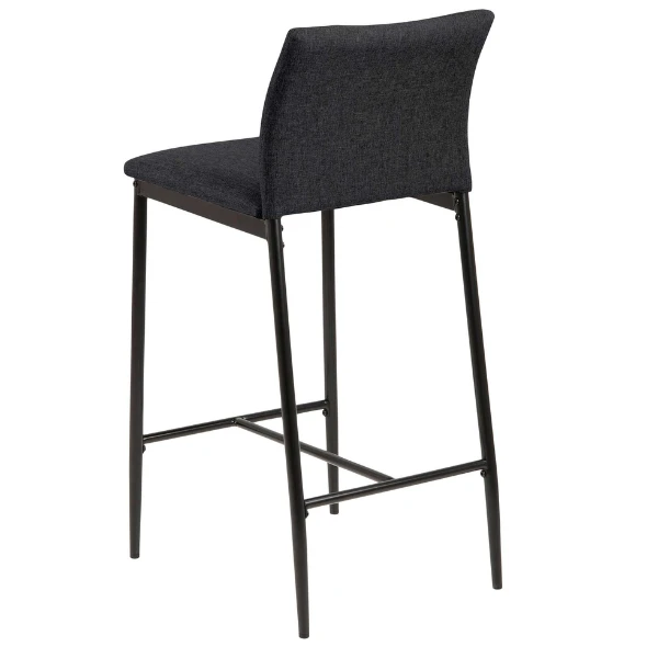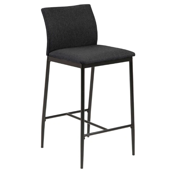 Barstoel Darren met grijze stoffen bekleding en zwarte metalen poten. Met voetensteun.Â