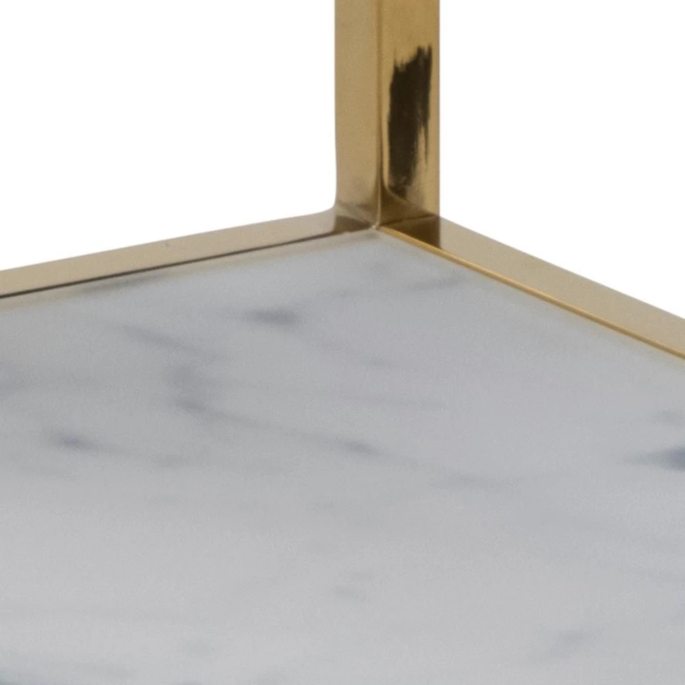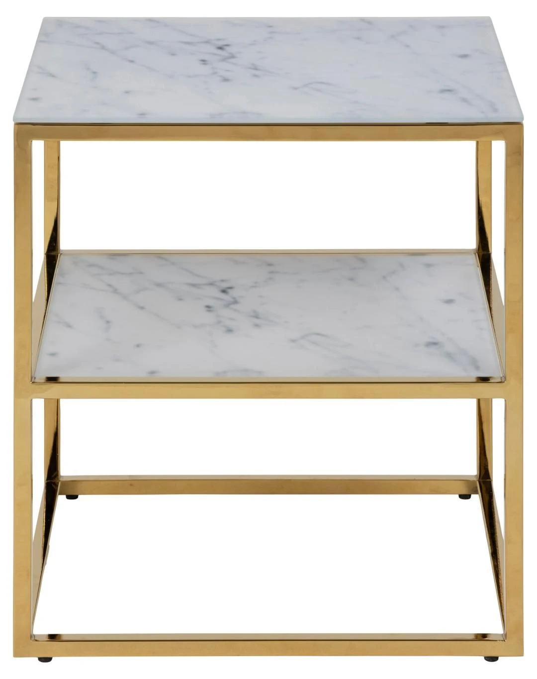 De Anika bijzettafel is ideaal om naast een bed of zetel te plaatsen. Deze bijzettafel is zeer praktisch dankzij haar extra legplankje. Je kan gemakkelijk een lampje, kaars of plant op het tafelblad plaatsen en boeken of magazines op het legplankje leggen. Deze bijzettafel is gemaakt uit kunstmarmer in het wit met gouden poten.Â
