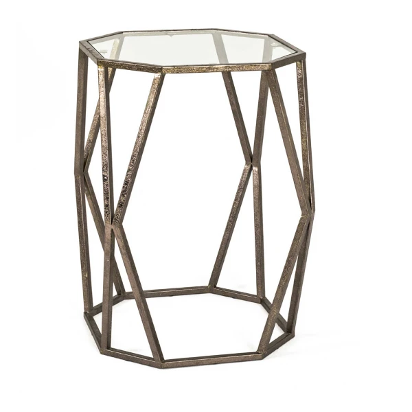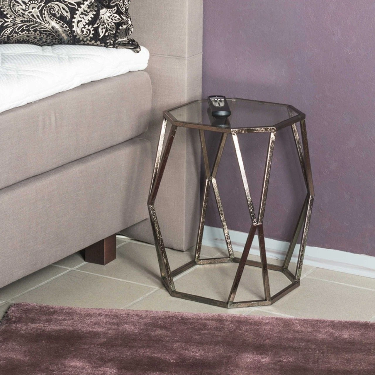 Bijzettafeltje Vardy, met tafelblad uit veiligheidsglas en brons gelakt metalen frame.
