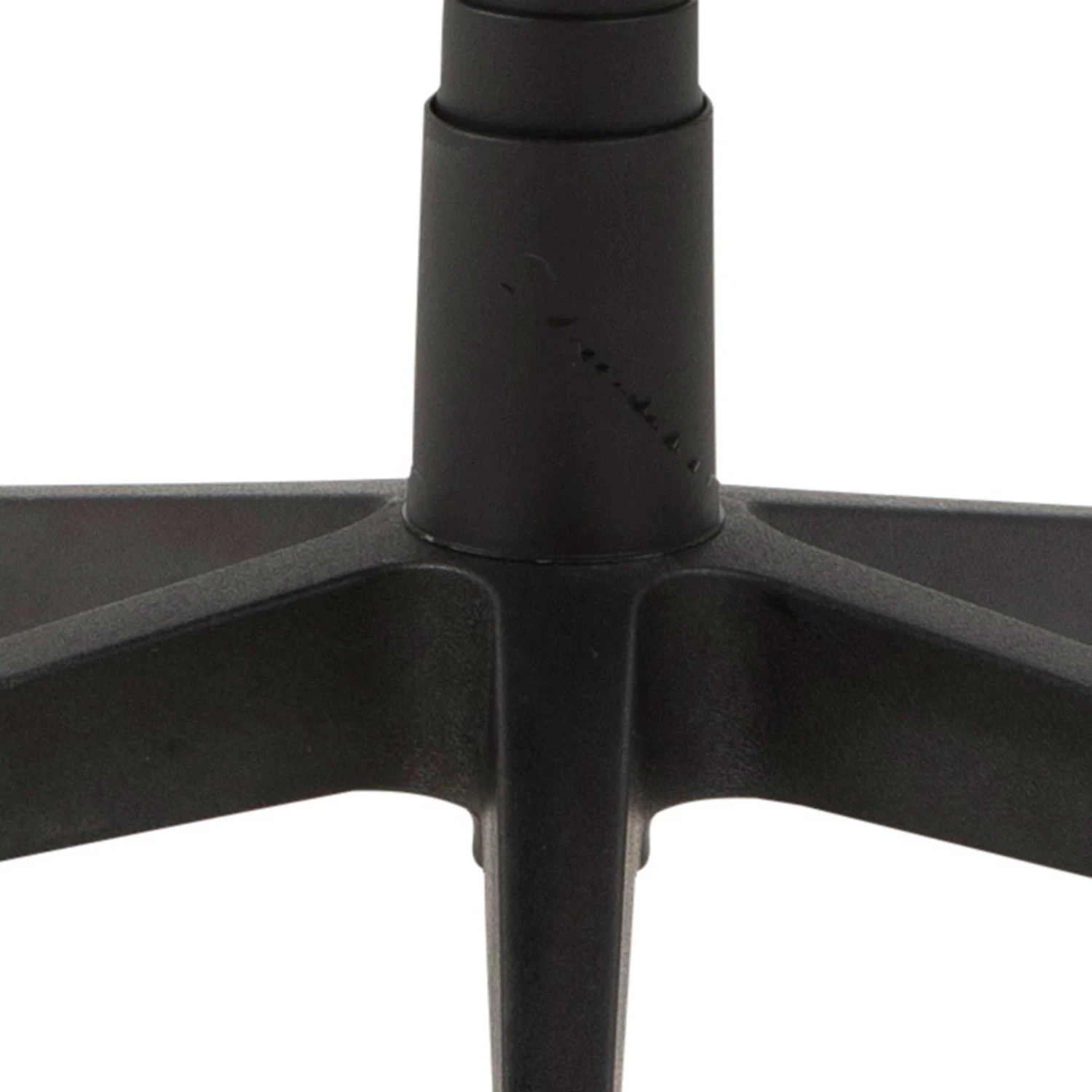 De voet is gemaakt van zwart polypropyleen, het zitting en rugleuning zijn overtrokken met kunstleder en zijn voorzien van horizontale stiknaden.