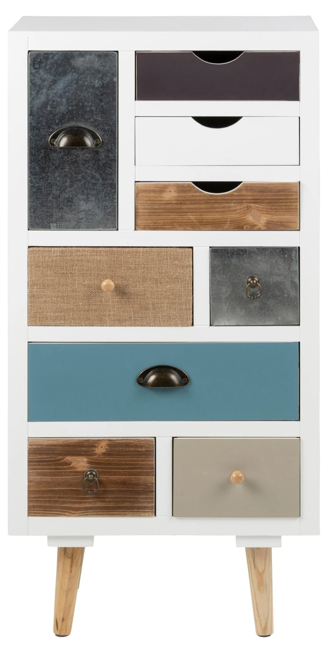 Commode Tiara 48cm, 9 Lades – Wit/multicolor
