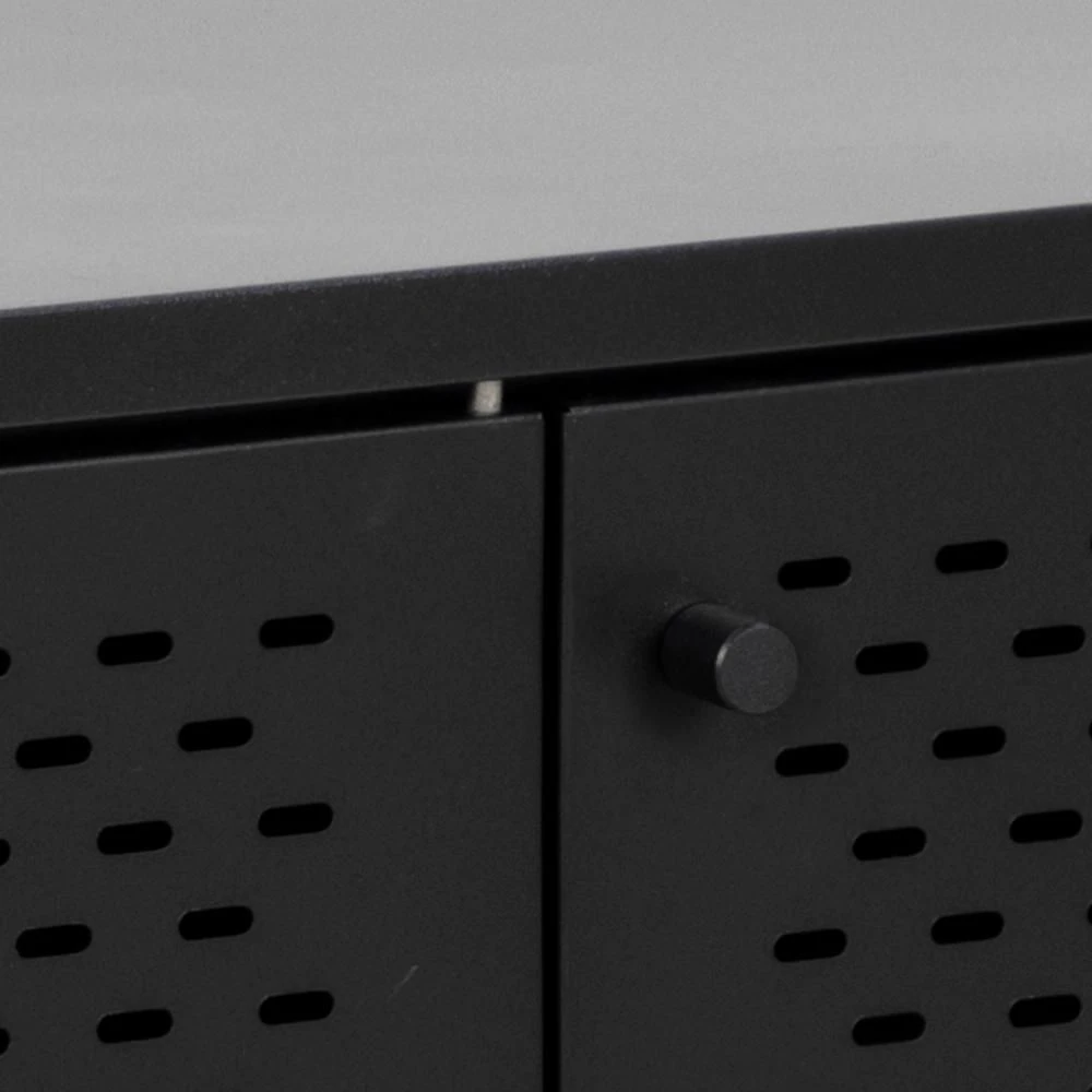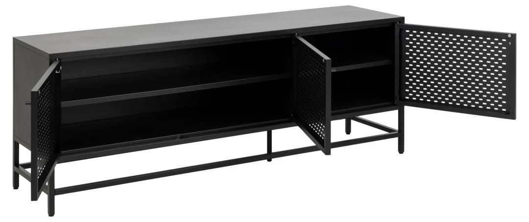 Dressoir Nebas, uitgerust met 3 deuren en 2 legplanken. Gemaakt ui metaal, afgewerkt met zwarte poedercoating.