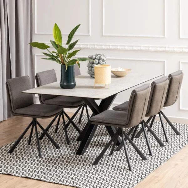 Een van de belangrijkste kenmerken van de Flynn eetkamerstoel is dat hij draaibaar is, zodat je moeiteloos kunt bewegen en draaien terwijl je zit. Deze functie voegt gemak en flexibiliteit toe aan je eetervaring, vooral tijdens grote familiebijeenkomsten of intieme etentjes.
