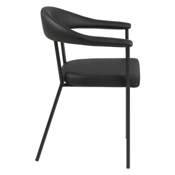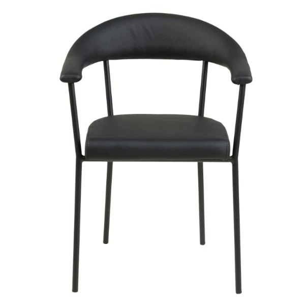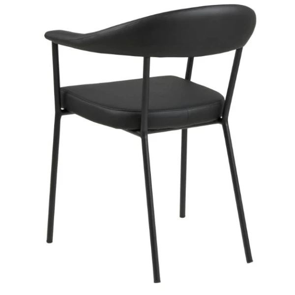 Eetkamerstoel Hava, gemaakt uit zwart gepoedercoat metaal met een zwarte kunstlederen bekleding.