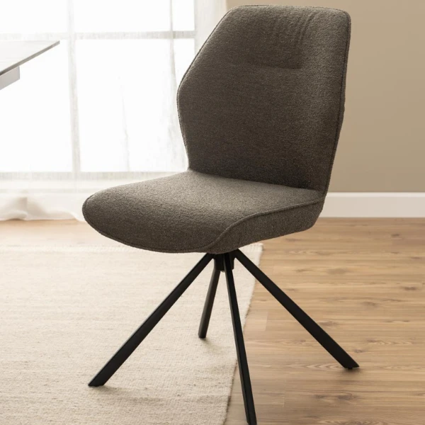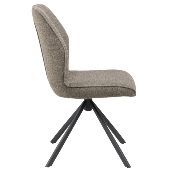 Draaibare eetkamerstoel Jarno 51×61.5×88.5cm met zwart onderstel in gepoedercoat staal en bekleding in taupe.Â