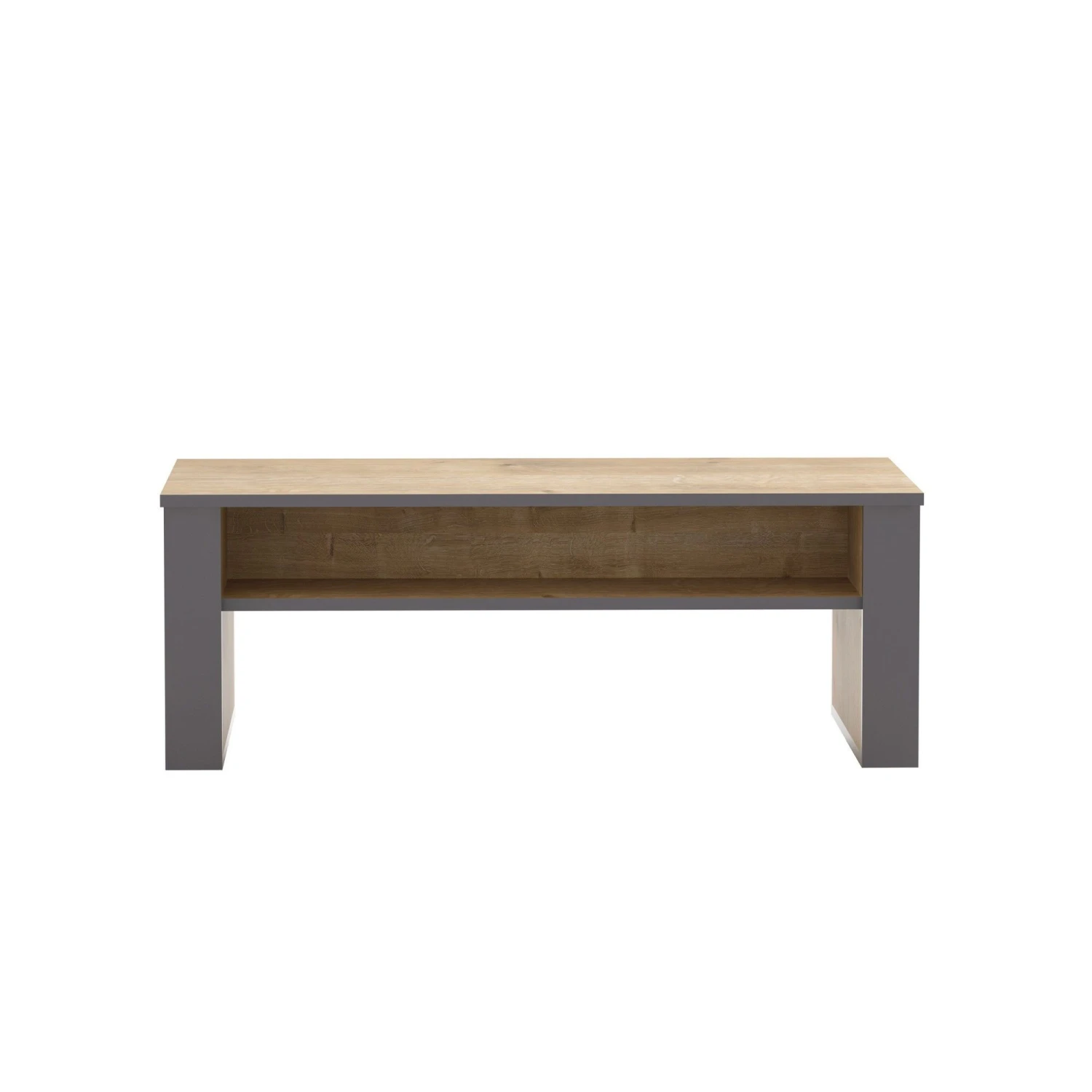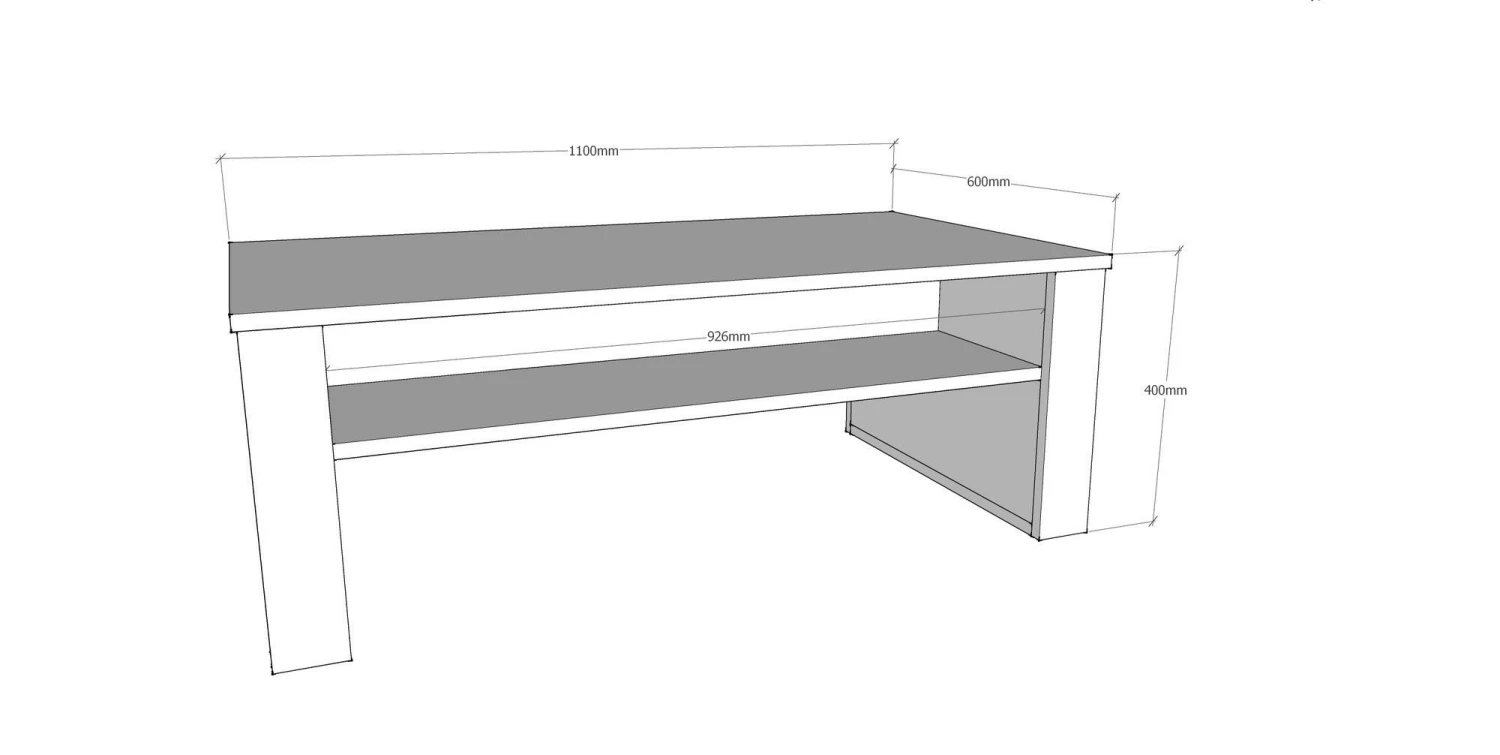 Voeg elegantie toe aan je huis met deze salontafel met 2 niveaus, gemaakt van 100% gemelamineerd spaanplaat. Hij biedt extra opbergruimte en meet 110x40x60cm.