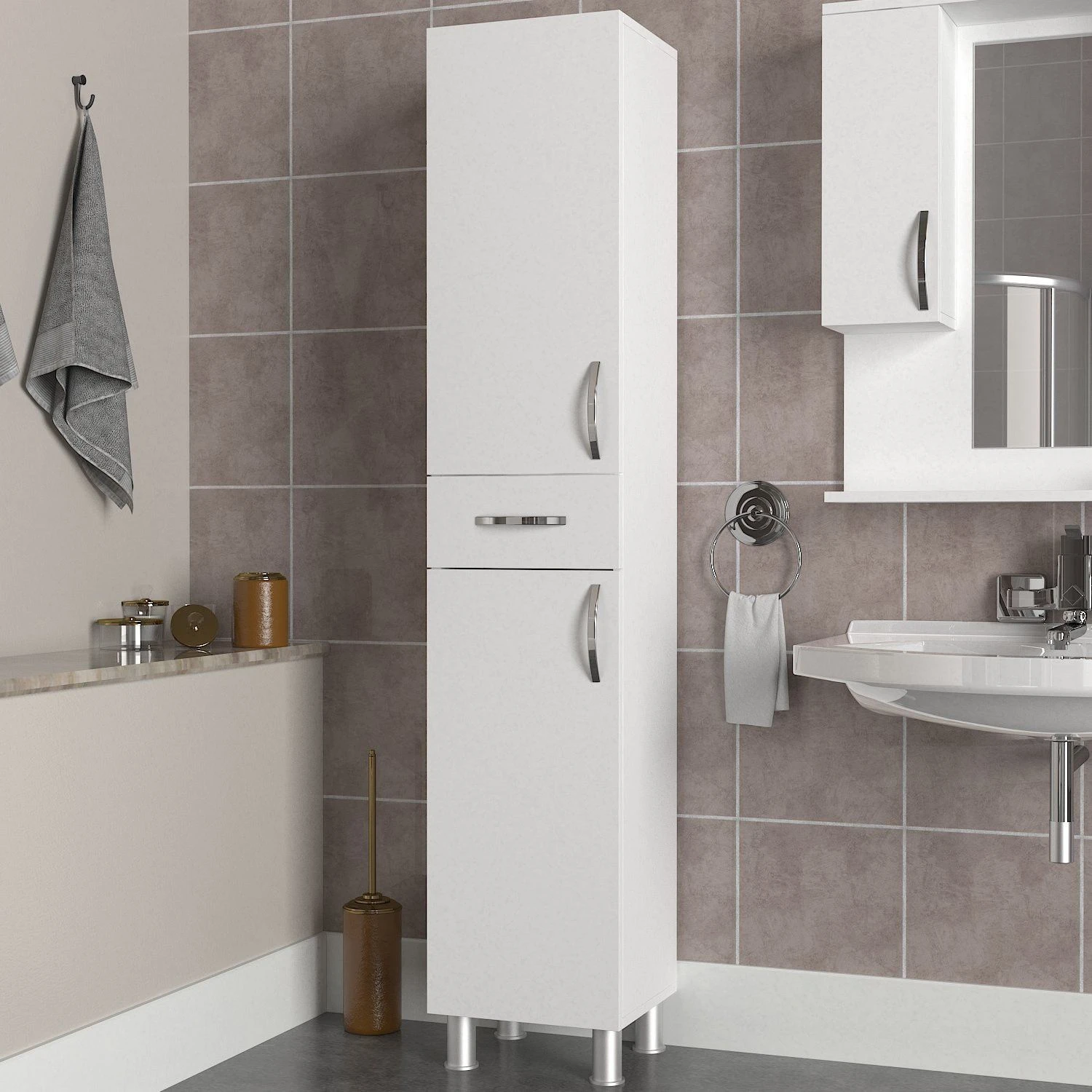 Furny Home Badkamermeubel | 100% Melaminegecoat Met Spaanplaathout Van 18 Mm Dik | 31,30 X 35 X 179 Cm | Wit