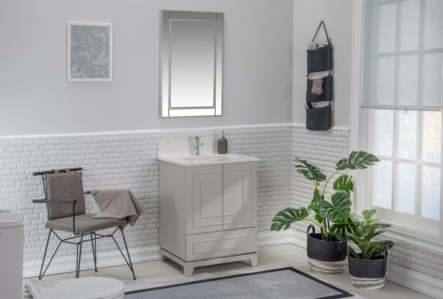 Maak kennis met de Jussara badkamermeubelset, een stijlvolle en functionele aanvulling voor elke badkamer. Deze set bestaat uit 2 delen en is ontworpen om elegantie en duurzaamheid in je ruimte te brengen. Gemaakt van materialen van topkwaliteit, waaronder 100% gelakt MDF (massief hout) met een dikte van 18 mm, is deze badkamermeubelset gemaakt om dagelijks gebruik te weerstaan en jarenlang mee te gaan.Een van de opvallende kenmerken van de Jussara badkamermeubelset is het aanrechtblad, gemaakt van 100% wit kwarts. Dit voegt niet alleen een vleugje verfijning toe aan de set, maar het biedt ook een uitstekende duurzaamheid en weerstand tegen vlekken en krassen. De onderbouwwastafel van porselein voegt nog meer gemak en elegantie toe aan de set en zorgt voor een naadloze en strakke uitstraling. De lade van de Jussara badkamermeubelset is gemaakt van 100% marien hout, bekend om zijn weerstand tegen vocht en vocht. Met een dikte van 12 mm zorgt deze lade ervoor dat je badkamerbenodigdheden veilig opgeborgen en gemakkelijk toegankelijk zijn. Zeg maar dag tegen een rommelig aanrecht en hallo tegen een opgeruimde en georganiseerde badkamerruimte.Inbegrepen in de set is een flotale spiegel, ontworpen om de algehele esthetiek van de Jussara badkamermeubelset aan te vullen. Met zijn strakke en moderne ontwerp voegt deze spiegel diepte en licht toe aan je badkamer, waardoor een ruimere en uitnodigende sfeer ontstaat. De spiegel meet 55 cm in de breedte en 80 cm in de hoogte en biedt voldoende reflectieruimte voor je dagelijkse verzorgingsroutines.Het Jussara badmeubel, met afmetingen van 60 cm in de breedte, 22 cm in de hoogte en 56 cm in de diepte, biedt voldoende opbergruimte zonder afbreuk te doen aan de stijl. Dit compacte maar functionele badmeubel is perfect voor kleinere badkamers of voor mensen die de voorkeur geven aan een minimalistische look. De elegante grijze kleur voegt een vleugje verfijning toe en past moeiteloos bij elke badkamerinrichting.Naast zijn esthetische aantrekkingskracht biedt de Jussara badkamermeubelset tal van voordelen. De hoogwaardige materialen die gebruikt zijn bij de constructie garanderen een lange levensduur, waardoor het een verstandige investering is voor je badkamer. De eenvoudig te reinigen oppervlakken en de resistente constructie zorgen voor moeiteloos onderhoud, waardoor je tijd en moeite bespaart in je dagelijkse schoonmaakroutine.Met zijn slimme ontwerp en doordachte constructie brengt de Jussara badkamermeubelset functionaliteit en stijl in je badkamer. Of je nu je bestaande ruimte renoveert of een nieuwe badkamer ontwerpt, deze meubelset zal zeker indruk maken. Upgrade je badkamer met de Jussara badkamermeubelset en geniet van een prachtige en functionele badkamer.