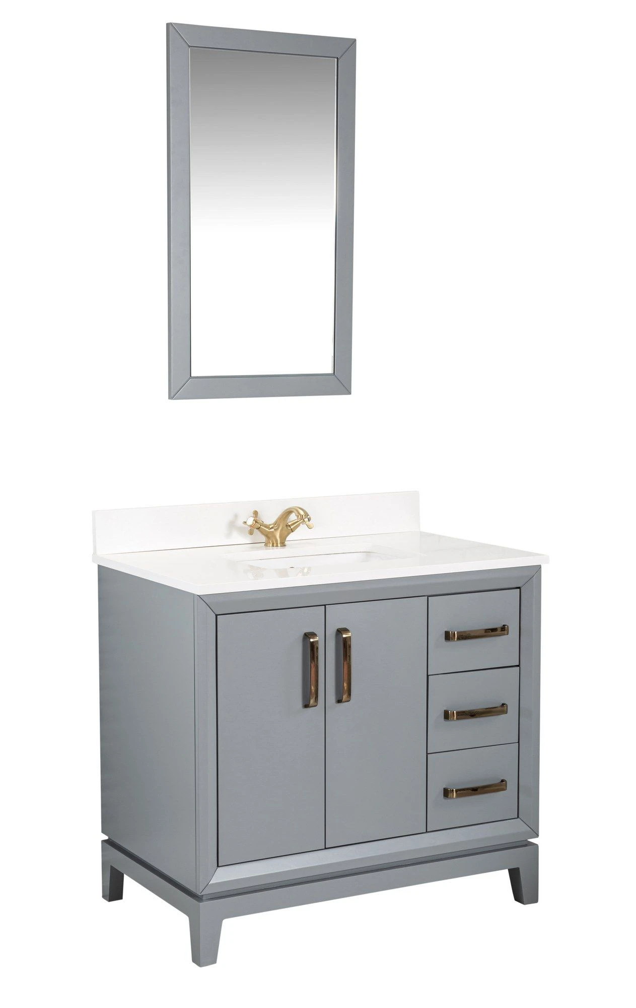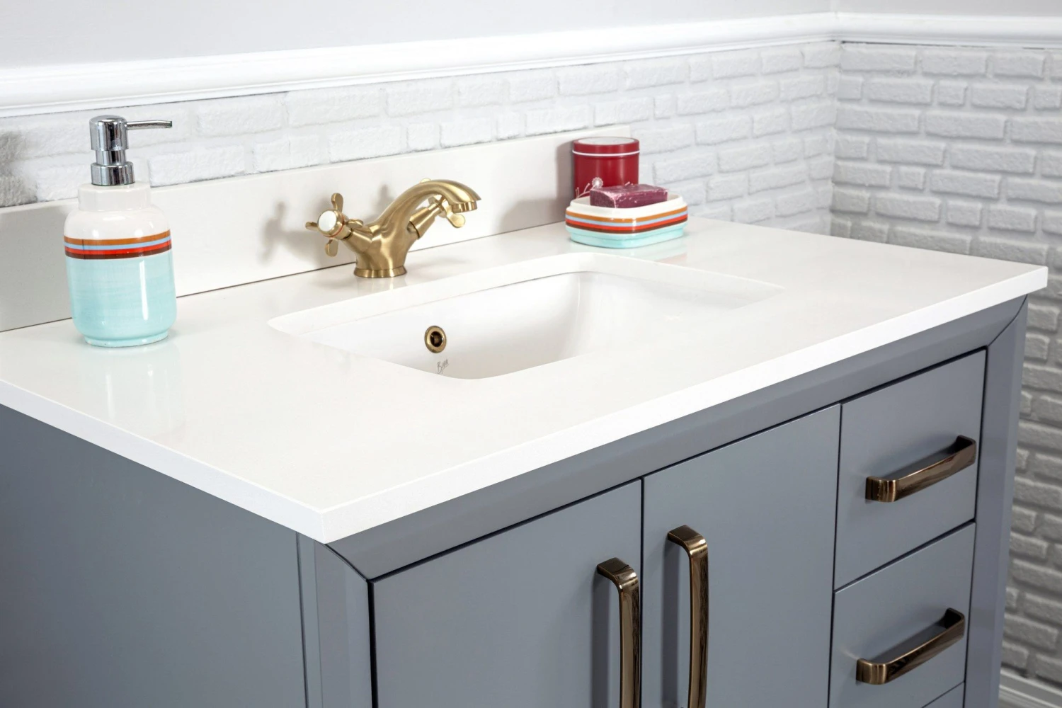 Jussara Badkamermeubelset: 2 Stuks | Massief Hout | Kwarts Werkblad | Donkergrijs