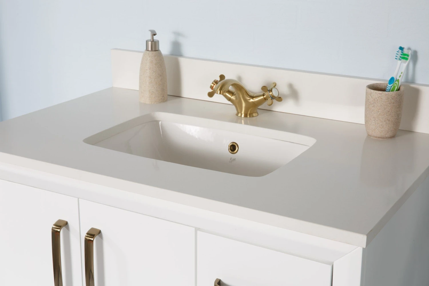 Jussara Badkamermeubelset (2st) | 100% Massief Hout | Aanrechtblad Wit Kwarts