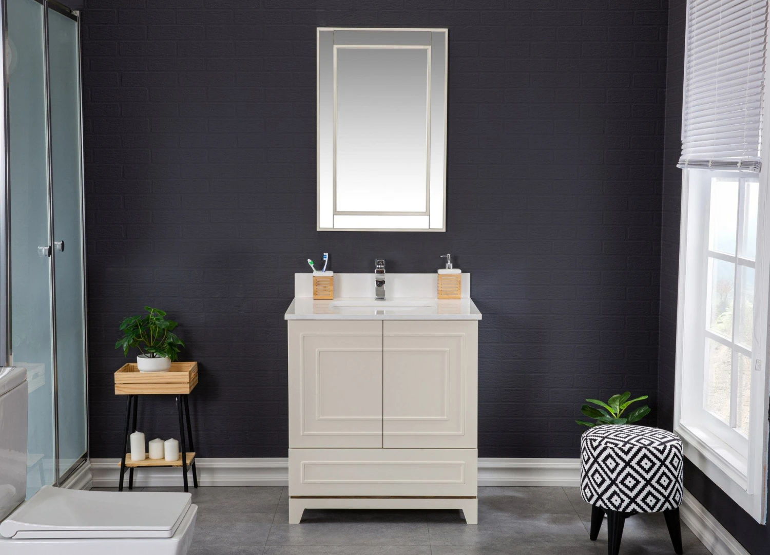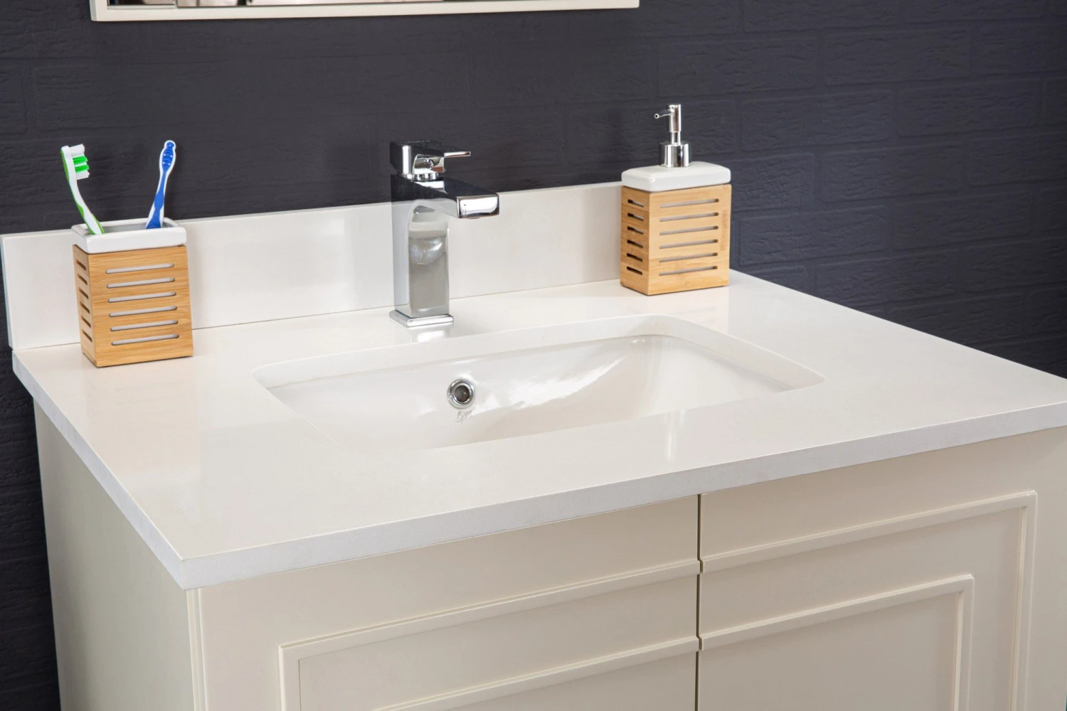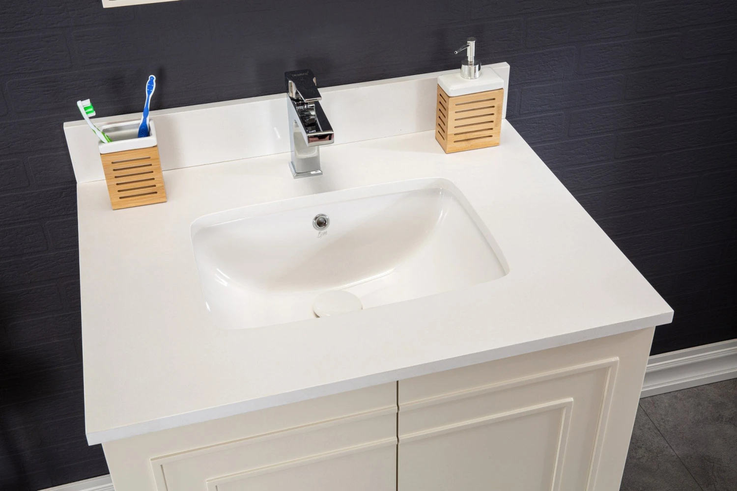 Jussara Badkamermeubelset | Crèmekleur | 100% Massief Hout | Kwarts Aanrechtblad