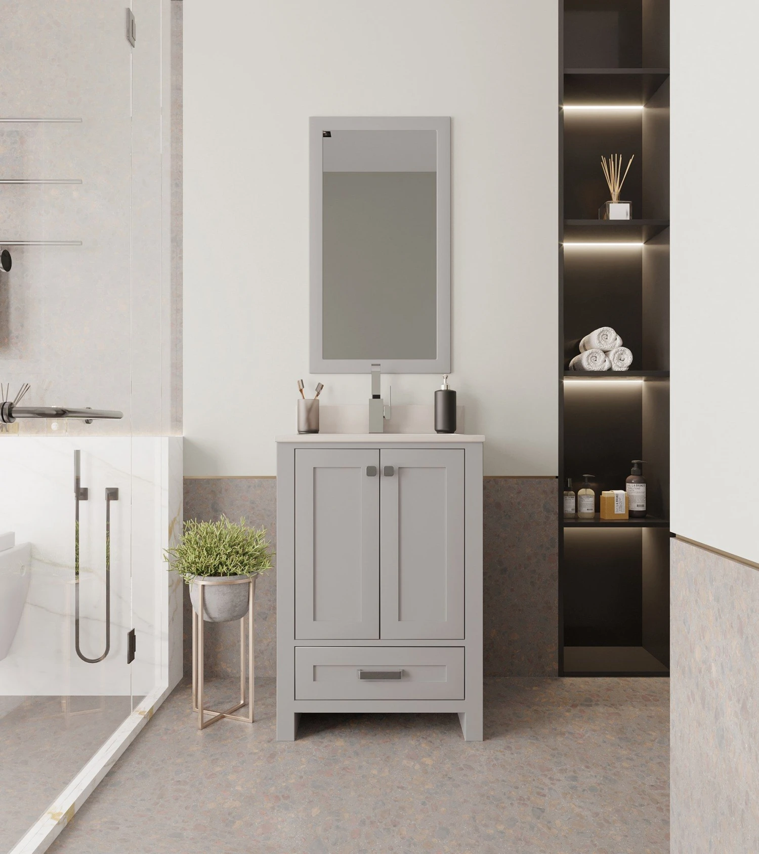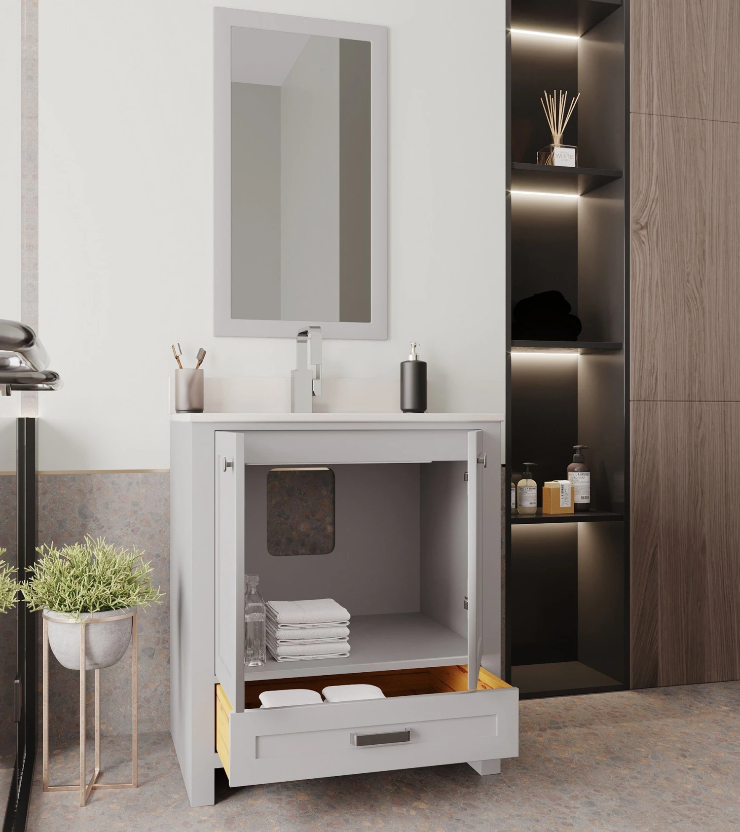 Jussara Badkamermeubelset | MDF Gelakt | Aanrechtblad Wit Kwarts | Grijs