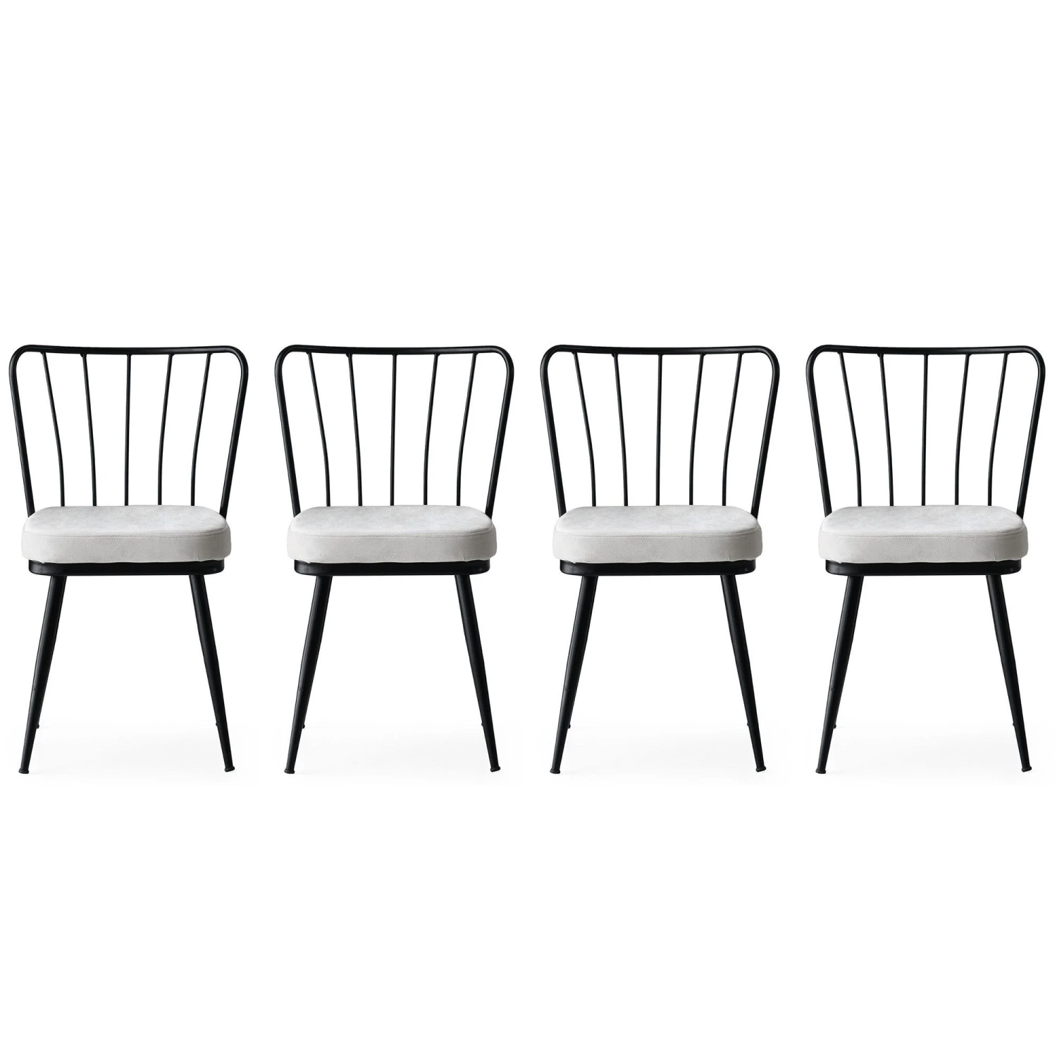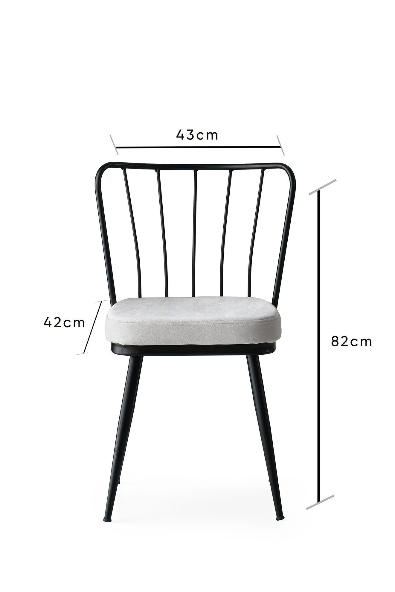Een moderne en stijlvolle stoelenset (4 stuks) met een duurzaam metalen frame. De fluwelen stoffen zittingen en metalen ruggen bieden zowel comfort als stijl. Afmetingen: B43 x H82 x D42 cm. Zithoogte: 50 cm. Maximaal gewicht: 175 kg. Verkrijgbaar in zwart