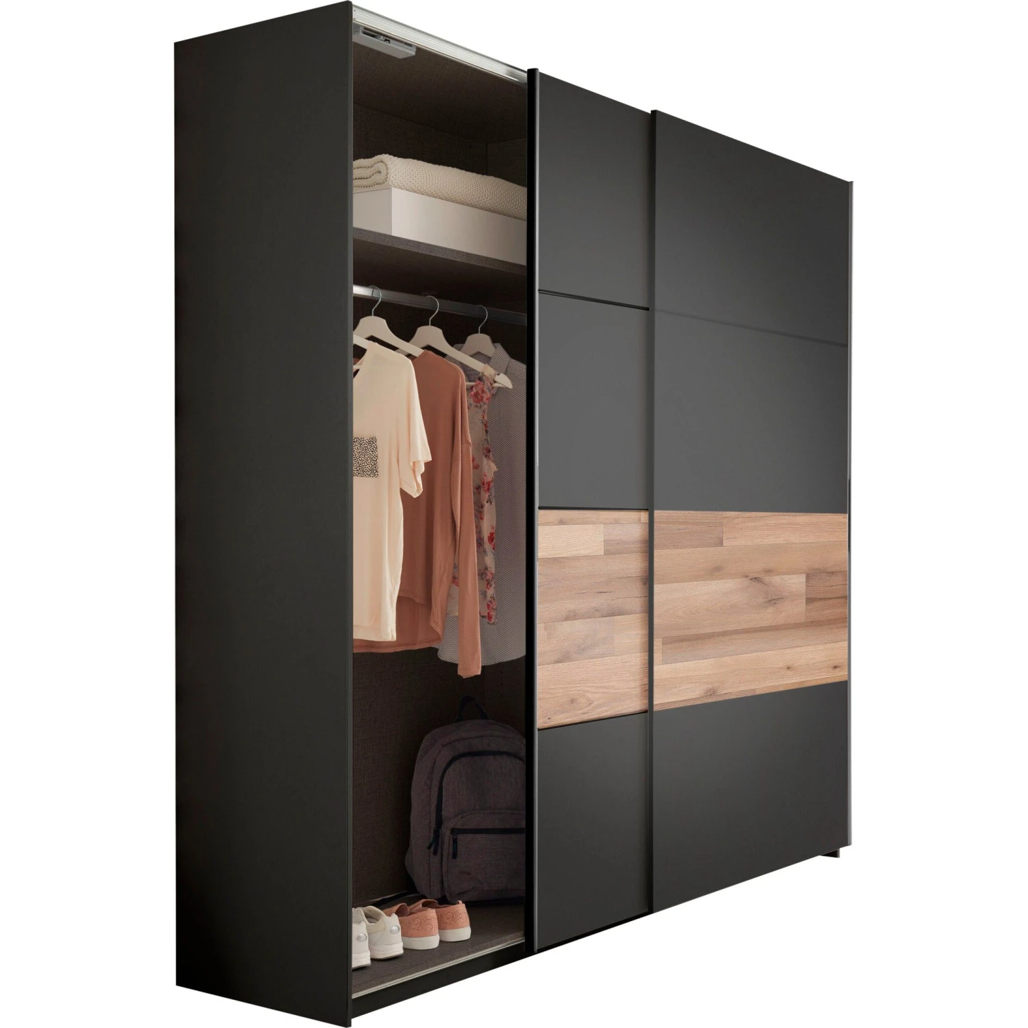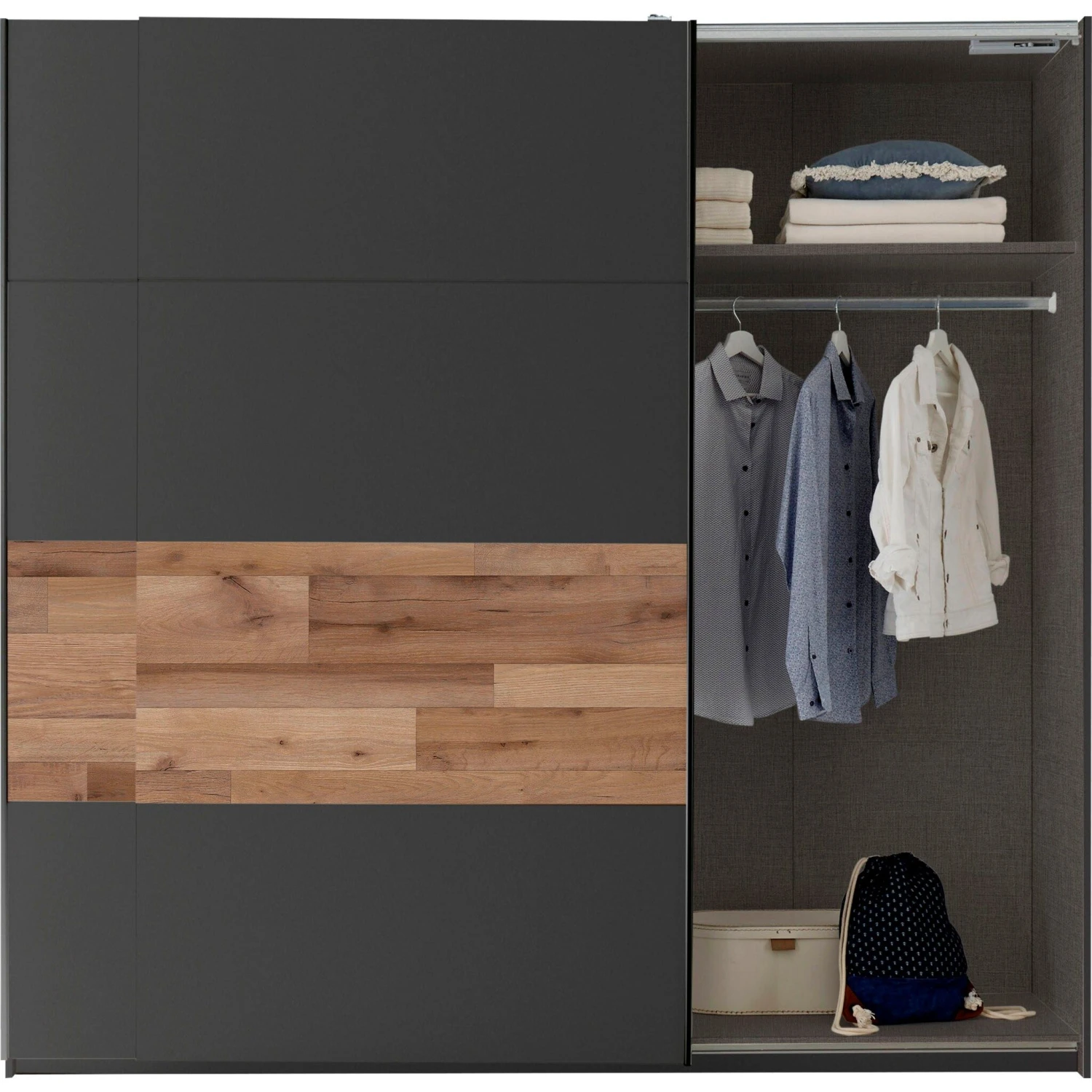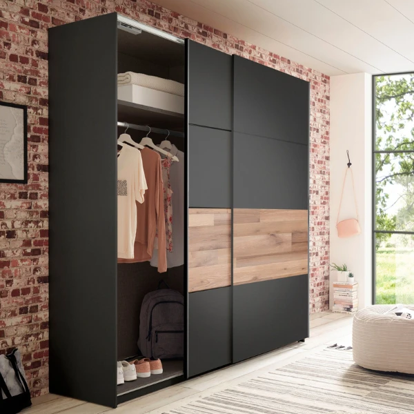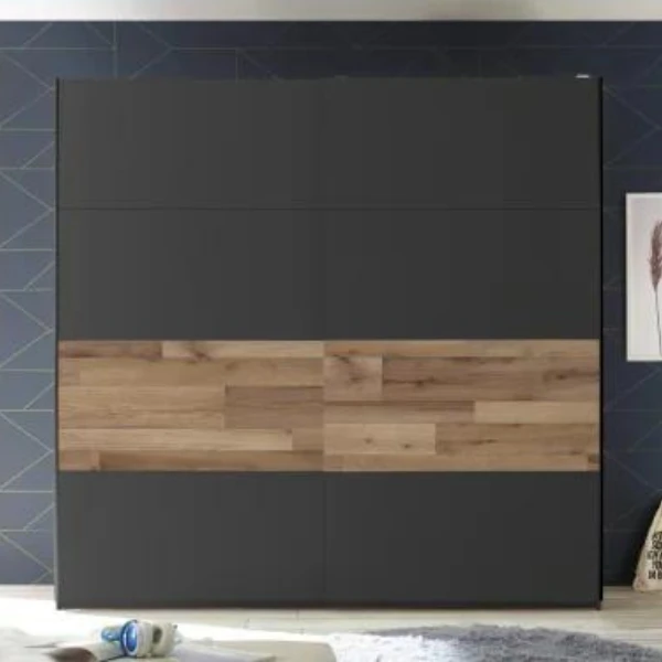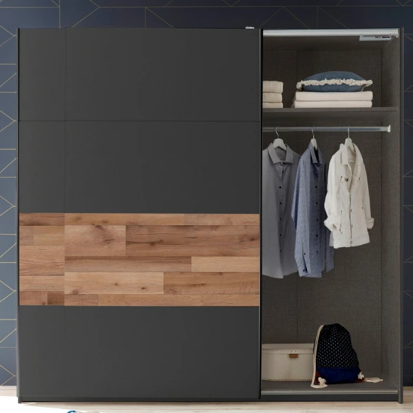 Kledingkast Aquino 215cm 2 Deuren – Grafiet/eik