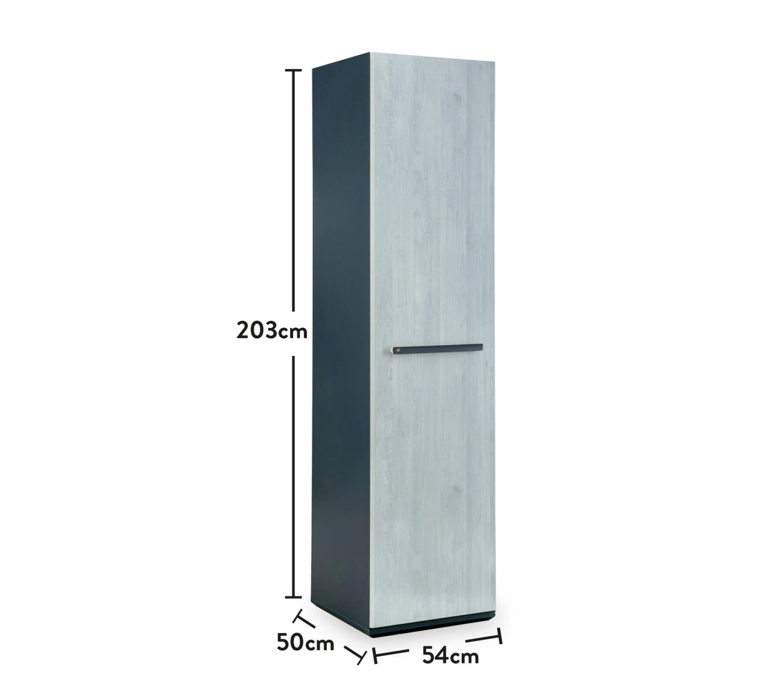 Met een dikte van 18 mm is deze kast stevig en duurzaam. Met een breedte van 54 cm, een hoogte van 203 cm en een diepte van 50 cm biedt hij voldoende opbergruimte voor je kleding, accessoires en andere persoonlijke spullen. De lades en vele planken zorgen voor een gemakkelijke organisatie, zodat alles zijn eigen plek heeft.