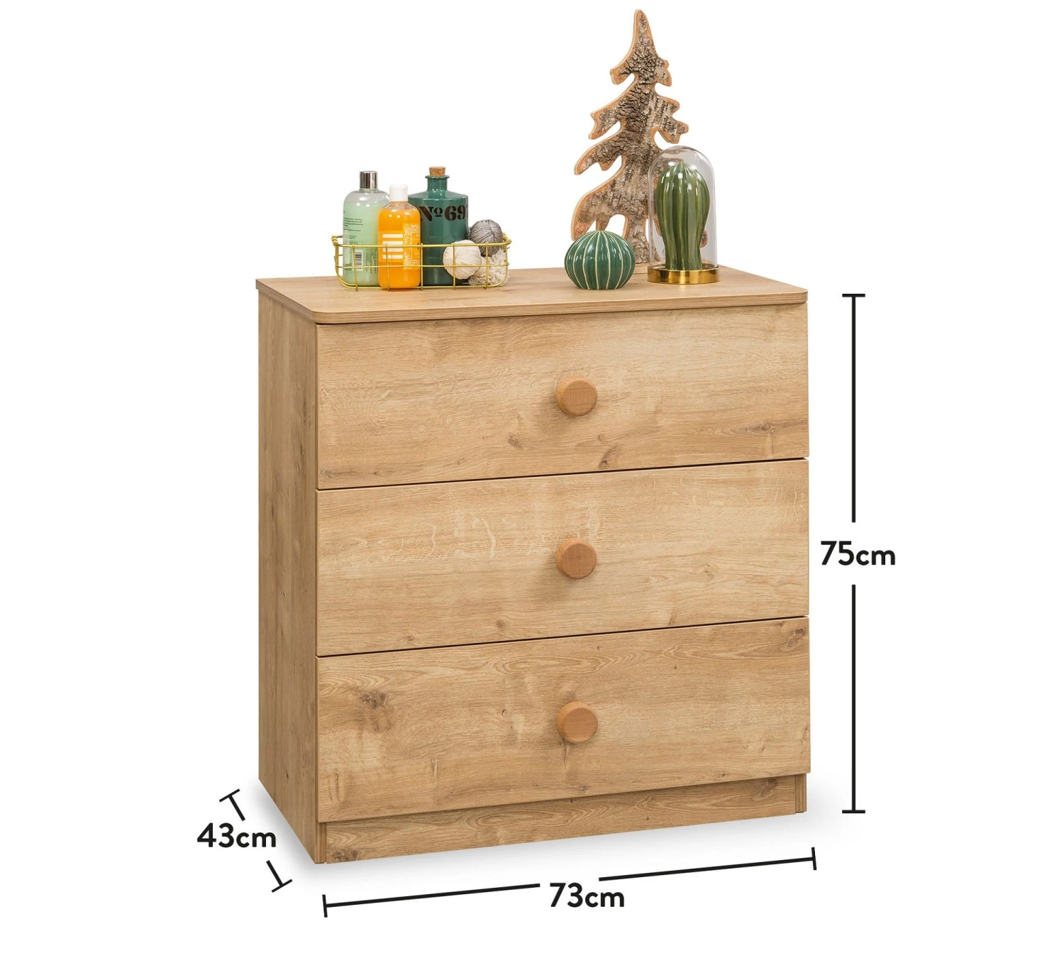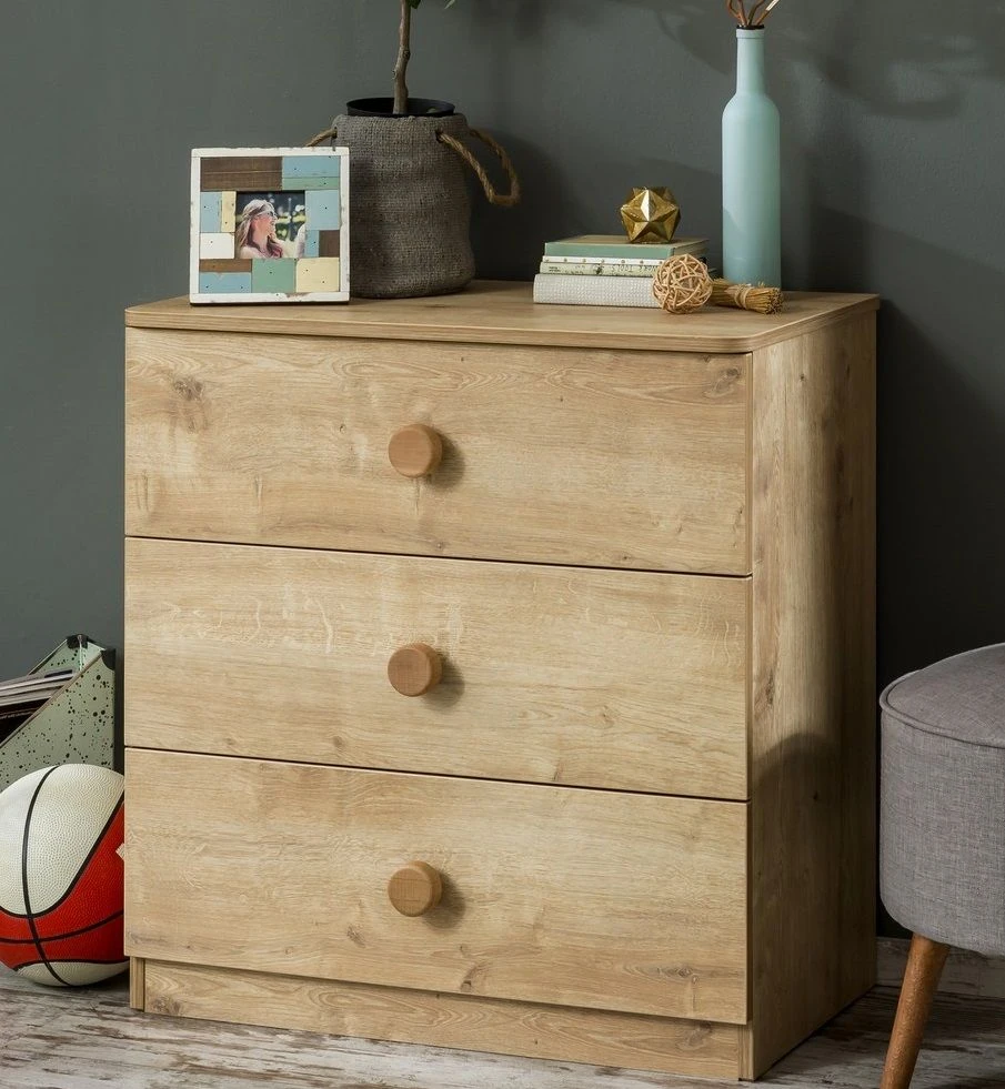 De ladekast heeft drie lades, zodat je je spullen georganiseerd en gemakkelijk toegankelijk kunt houden. Bovendien zijn deze lades uitgerust met een zacht sluitmechanisme, wat zorgt voor een stille en soepele werking. Geen dichtslaande lades meer!