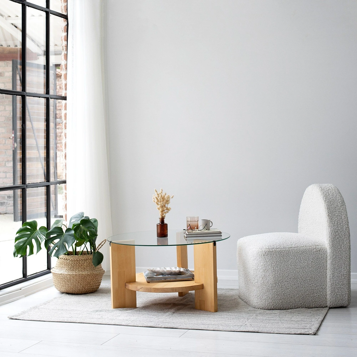 Locelso Salontafel | 100% Gehard Glas | Massief Grenen Frame | Eikenkleur
