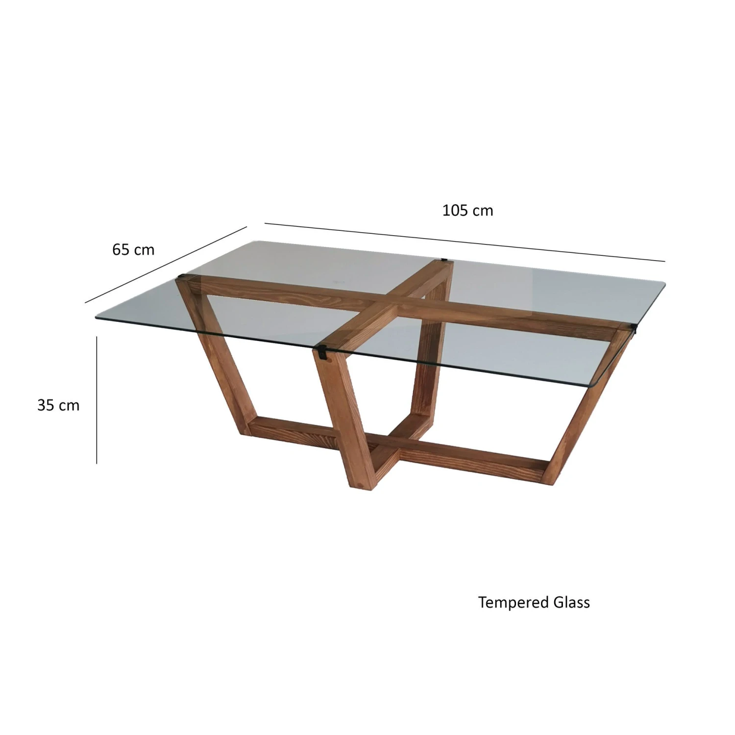 De Locelso Salontafel heeft een strak en modern ontwerp met een blad van 100% gehard glas en een frame van gemelamineerd spaanplaat in een walnootkleur. Afmetingen: 105cm (B) x 35cm (H) x 65cm (D)