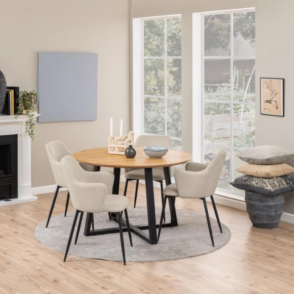 Met zijn 120×75 cm biedt deze ronde eettafel voldoende ruimte voor jou en je geliefden om samen te eten. De ronde vorm moedigt conversatie aan en zorgt ervoor dat iedereen zich betrokken voelt bij de eetervaring. Of je nu een etentje organiseert of gezellig met je gezin eet, deze tafel biedt de perfecte setting.