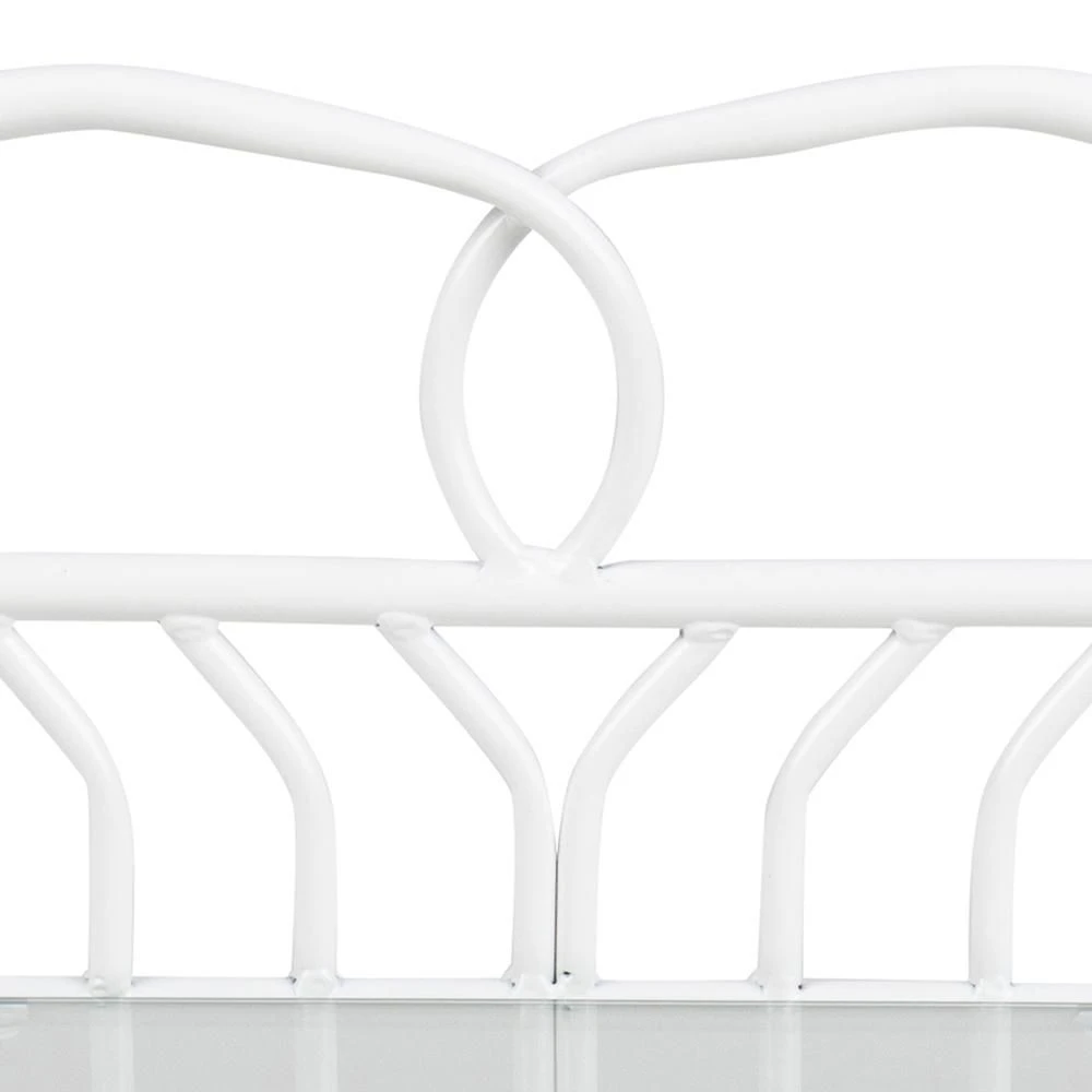 Het landelijke nachtkastje van de Laila-collectie past in elk klassiek of landelijk interieur. Met haar wit gepoedercoat metalen frame en glazen tafelblad beschikt dit nachtkastje over een speciaal design. Je kan er gemakkelijk benodigdheden of decoratie op plaatsen dankzij het extra metalen legplankje aan de onderkant.