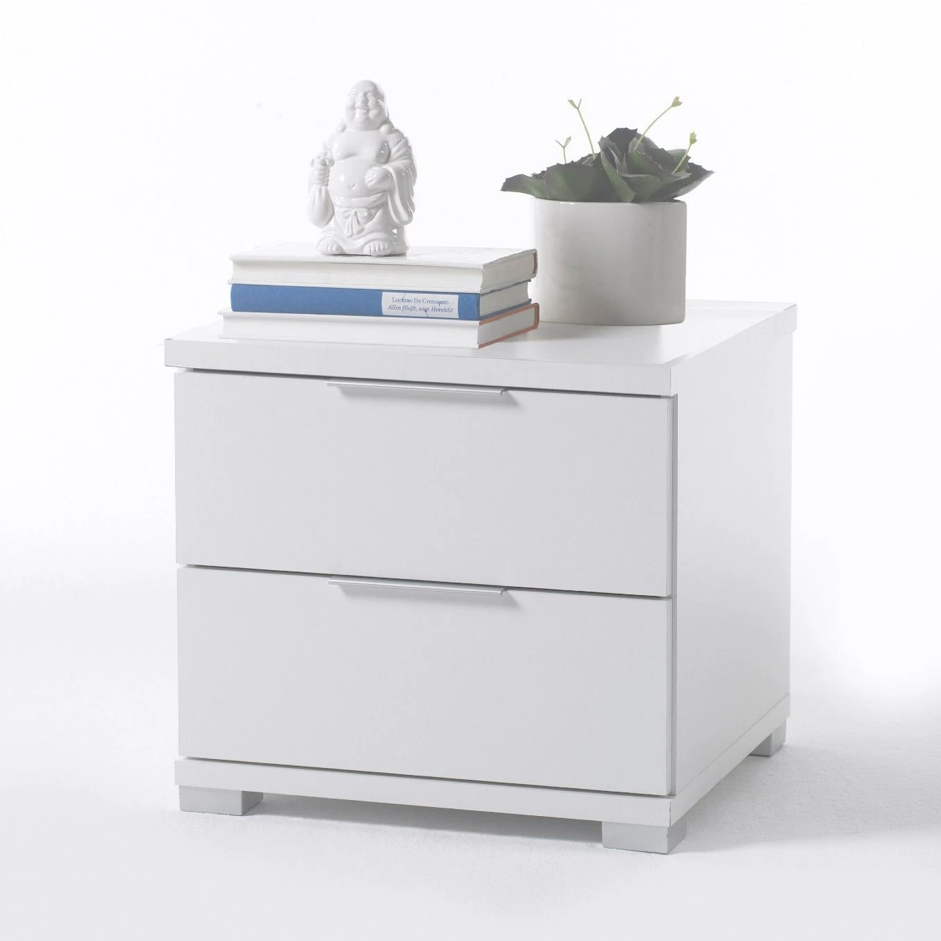 Nachtkastje Nacho met 2 lades, gemaakt uit spaanplaat in wit.
