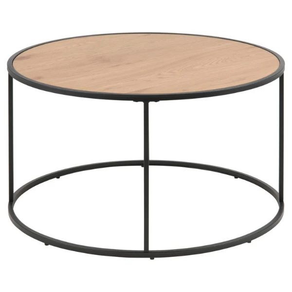 Ronde salontafel Dover met blad in wilde eikdecor en mat zwart frame, 80 x 80 cm.