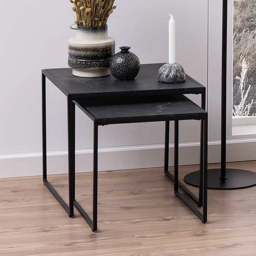 Set Van 2 Bijzettafeltjes Idris – Marmer/zwart