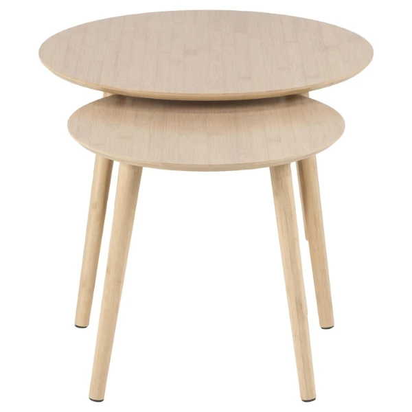 Een van de belangrijkste kenmerken van deze salontafelset is het gebruik van bamboe van hoge kwaliteit. Bamboe is niet alleen esthetisch mooi, maar staat ook bekend om zijn sterkte en duurzaamheid. De uv-lak die op het tafelblad is aangebracht verhoogt de duurzaamheid door het te beschermen tegen verkleuring en krassen veroorzaakt door dagelijks gebruik.