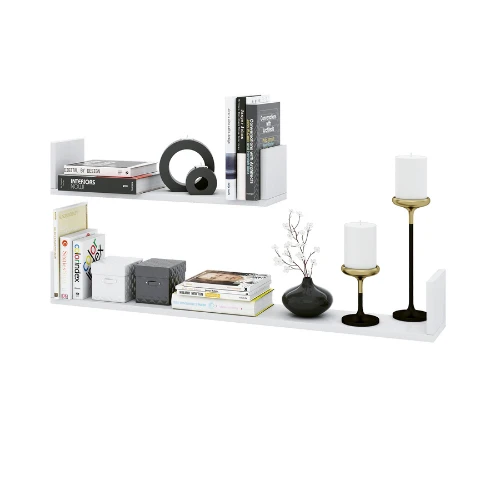 Deze set wandplanken afgewerkt in een strakke witte kleur is ideaal voor het uitstallen van boeken of decoratie. Door de u-vorm kunnen uw boeken gemakkelijk rechtop geplaatst worden zonder dat ze omvallen. Ook verkrijgbaar in andere uitvoeringen.