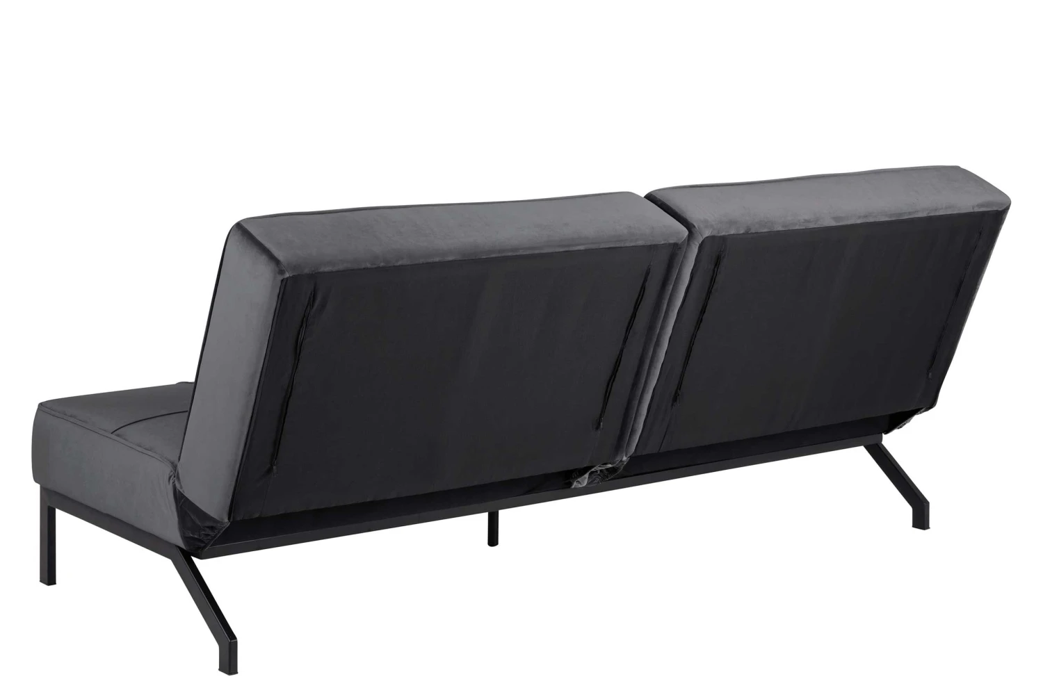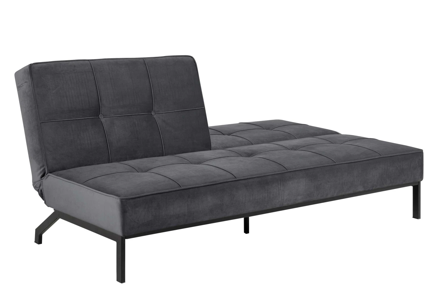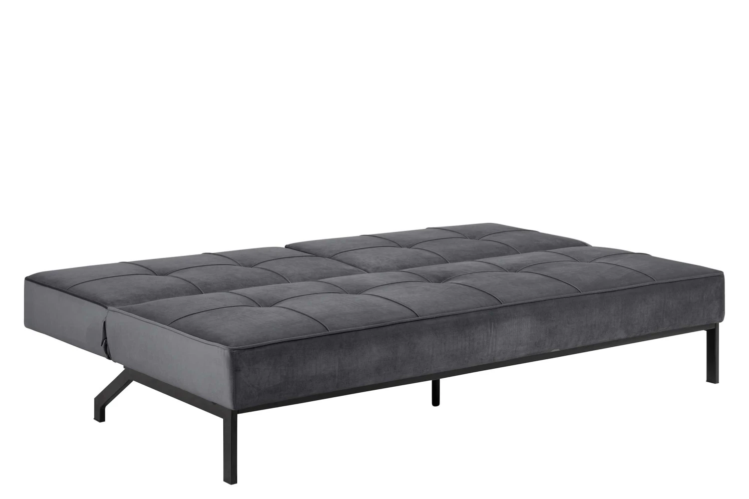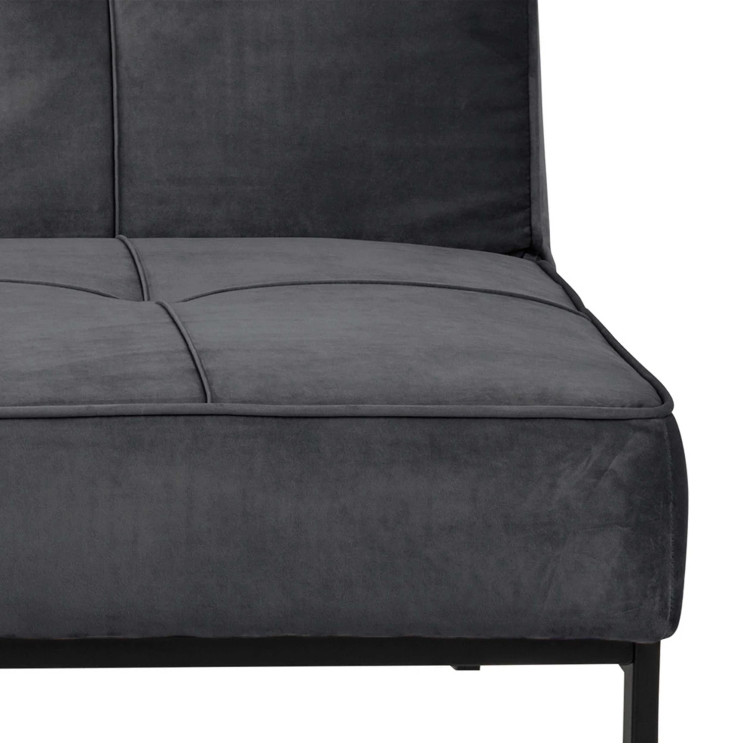Slaapbank Giovanni met donkergrijze, fluwelen bekleding en zwart onderstel.