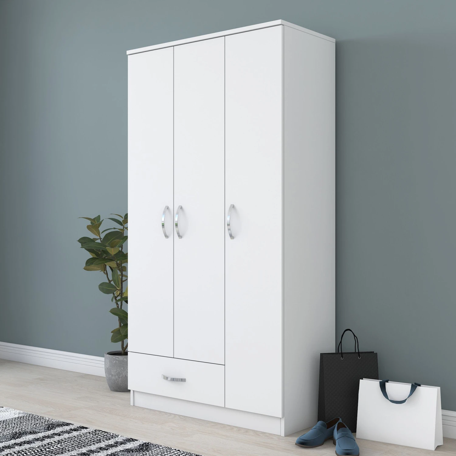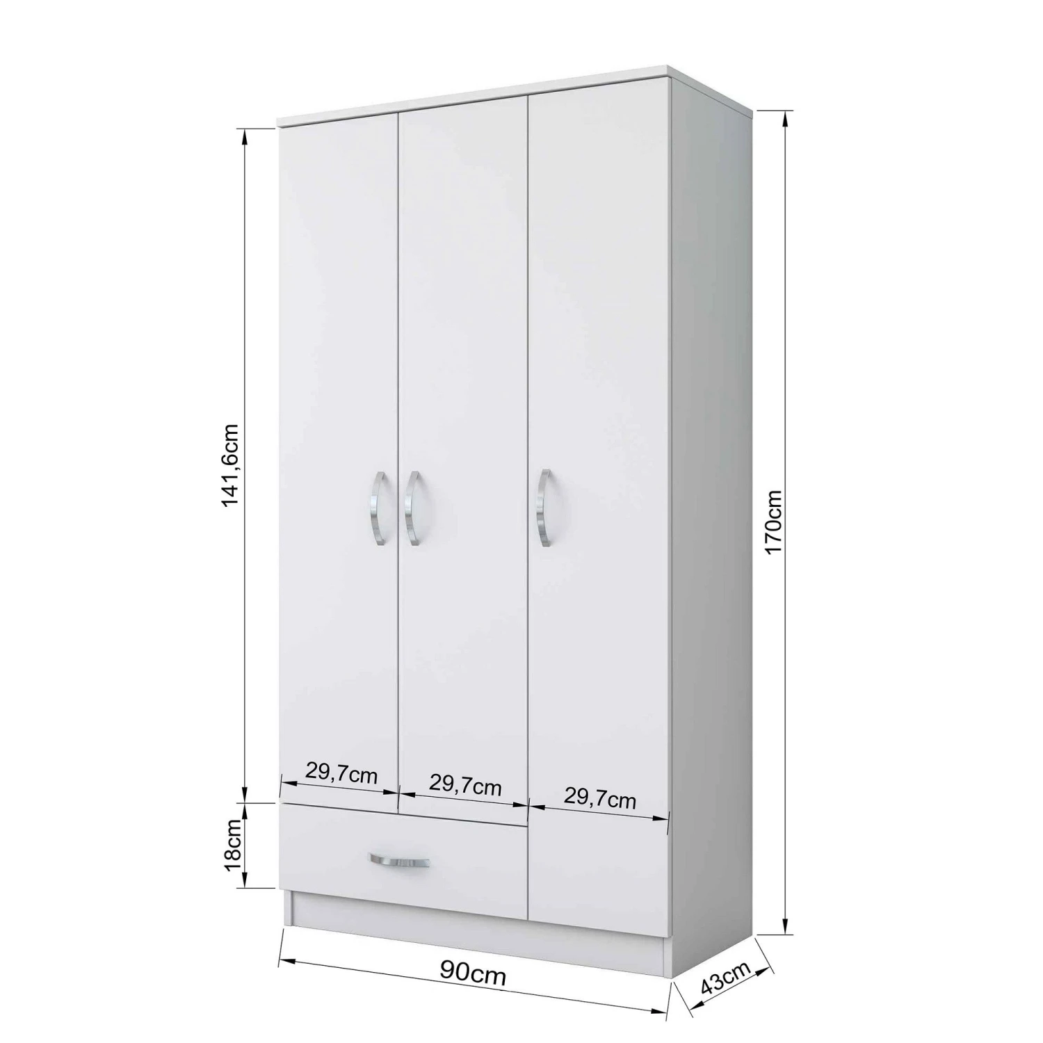 Ben je op zoek naar een goed ontworpen, stevige en functionele garderobekast voor thuis? Zoek dan niet verder, want wij hebben de perfecte oplossing voor je. Onze garderobekast is gemaakt van 100% gemelamineerd spaanplaat, wat duurzaamheid en een lange levensduur garandeert. Een van de belangrijkste kenmerken van onze garderobekast is de dikte. Met een dikte van 18 mm kun je erop vertrouwen dat deze kledingkast bestand is tegen dagelijks gebruik en niet snel tekenen van slijtage zal vertonen.Qua afmetingen heeft onze kledingkast een breedte van 90 cm, een hoogte van 170 cm en een diepte van 43 cm. Dit formaat is ideaal voor de meeste slaapkamers en biedt voldoende opbergruimte voor je kleding en spullen.Binnenin de kledingkast vind je een handige lade met een afmeting van 59,7 cm in de breedte en 18 cm in de hoogte. Deze lade is perfect voor het opbergen van kleinere spullen zoals sokken, ondergoed of accessoires.De garderobedeur heeft een breedte van 29,7 cm, waardoor je gemakkelijk bij je kleding kunt. De deur is ontworpen met functionaliteit in het achterhoofd, zodat hij soepel opent en sluit.Onze garderobekast heeft ook talloze legplanken, zodat je extra opbergmogelijkheden hebt. Je kunt je opgevouwen kleding en schoenen netjes ordenen, of zelfs je favoriete accessoires op deze planken uitstallen.Voor de veiligheid en stabiliteit kan deze kledingkast aan de muur worden bevestigd. Dit is vooral belangrijk als je kinderen hebt of in een aardbevingsgebied woont. Door de kledingkast aan de muur te bevestigen, kun je met een gerust hart weten dat hij niet per ongeluk zal omvallen. Deze neutrale tint past moeiteloos bij elke interieurstijl, waardoor het een veelzijdige keuze voor je huis is. Of je nu een minimalistische, moderne of traditionele stijl hebt, deze kledingkast past er naadloos in.Kortom, als je op zoek bent naar een goed ontworpen, stevige en functionele kledingkast voor je huis, zoek dan niet verder. Onze kledingkast, gemaakt van 100% gemelamineerd spaanplaat, biedt duurzaamheid en een lange levensduur. Met zijn dikte van 18 mm, afmetingen van 90 cm x 170 cm x 43 cm, handige lade, talloze legplanken, optie voor wandbevestiging en mooie witte kleur is deze kledingkast de perfecte aanvulling voor elk huis. Investeer in deze kast om je woonruimte moeiteloos te organiseren en te verbeteren.