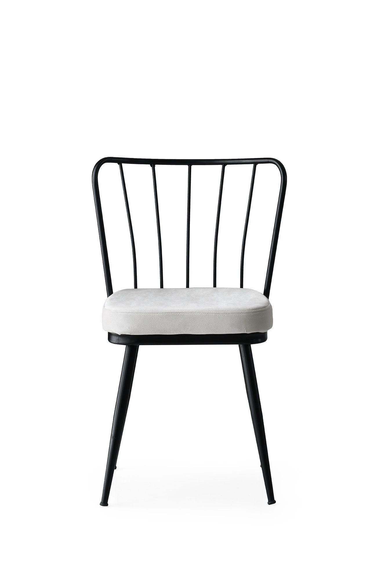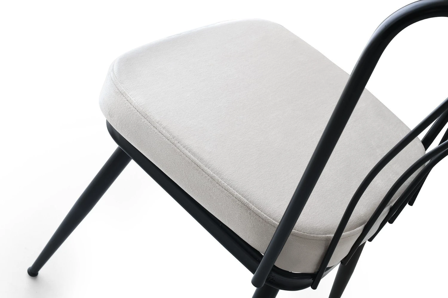 Stoelset (2 stuks) – Stijlvolle en comfortabele aanvulling op elk zitmeubel. Modern en uniek ontwerp. Frame: 100% metaal. Zitting: Fluwelen stof/melamine gecoate spaanplaat. Rugleuning: Metaal. Afmetingen: 43 cm breedte, 82 cm hoogte, 42 cm diepte. Zithoogte: 50 cm. Draagvermogen: 175 kg. Kleur: Zwart
