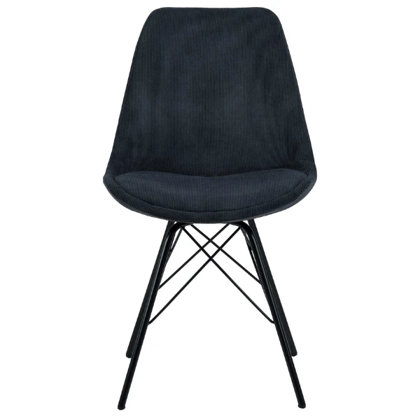 De Erin-stoelen hebben een modern design met hun metalen poten en kuipzitting, maar hebben dankzij de antracietkleurige geribde stof toch een eigenwijze uitstraling.
