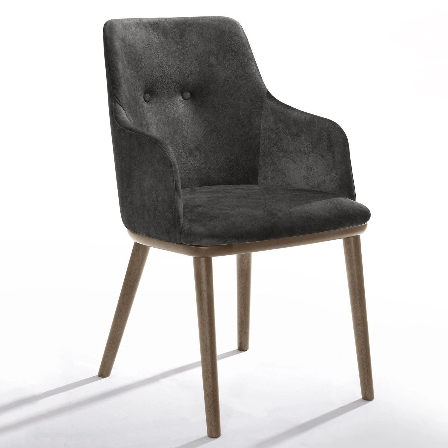 Grijze eetkamerstoel Moussa met massief houten poten.