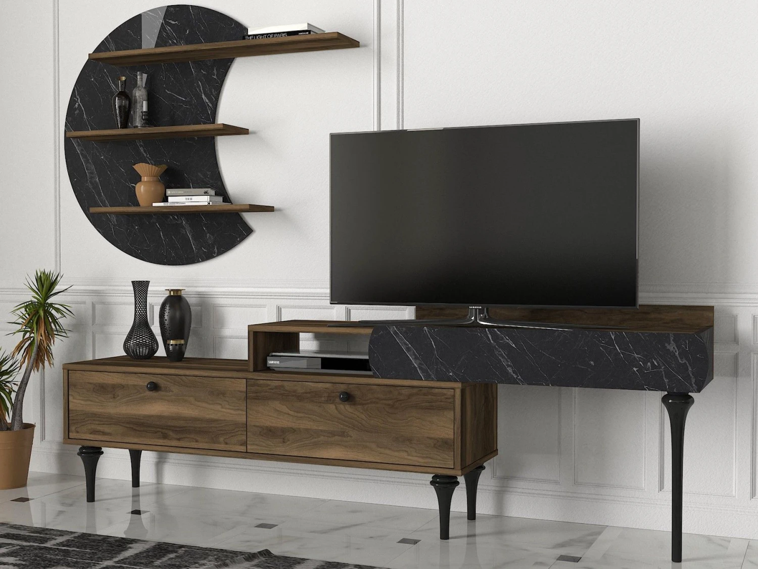 De Walnut Black kleur van het Talon TV-meubel voegt een vleugje verfijning toe aan elke woonkamer. Het elegante en tijdloze ontwerp past moeiteloos bij zowel moderne als klassieke interieurs, waardoor het een veelzijdige keuze is voor elk huis. Of je nu een minimalistische of eclectische stijl hebt, het Talon TV-meubel past er naadloos in en verbetert de algehele sfeer van je ruimte.