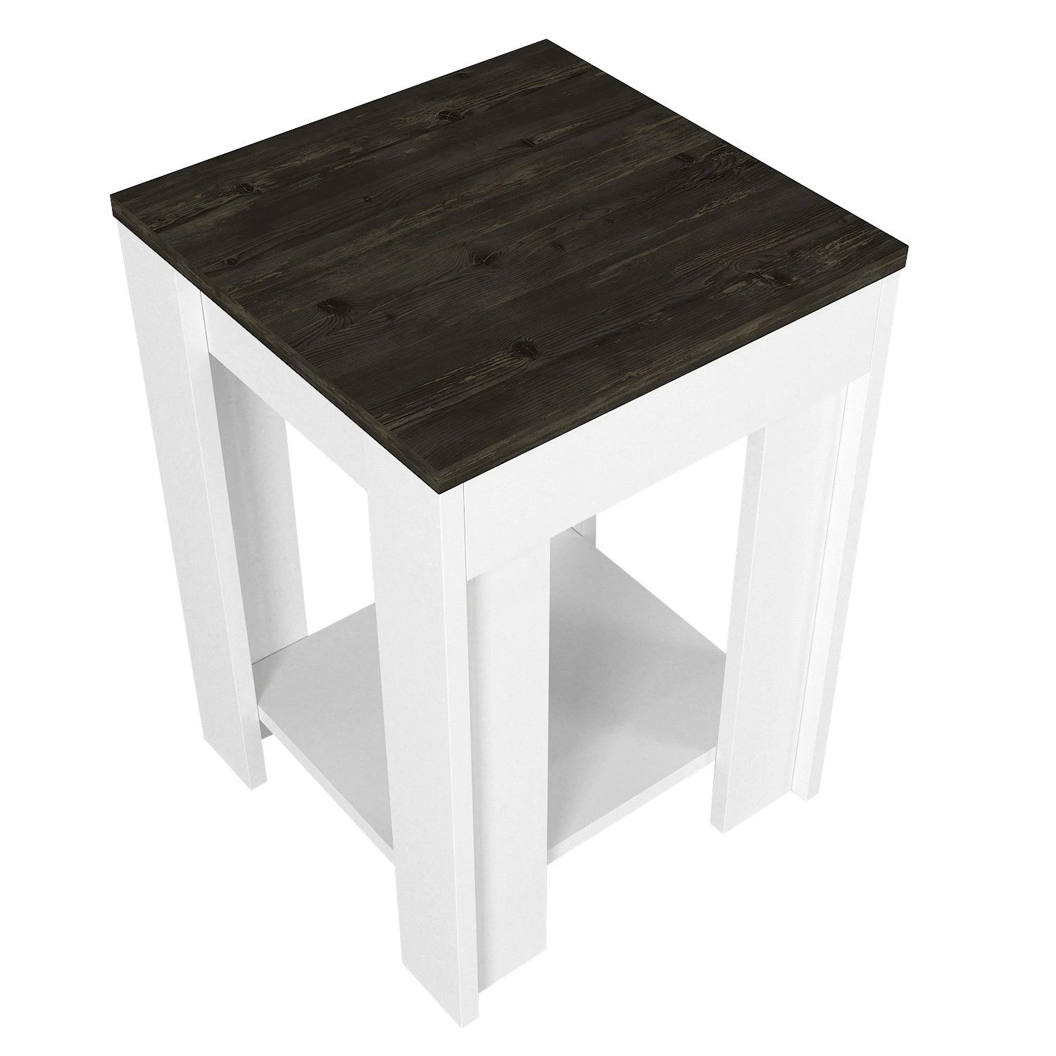 Tera Home Bijzettafel: 100% melamine gecoate spaanplaat, 18mm dikte, 40cm breedte, 56cm hoogte, wit en donkerbruine kleur