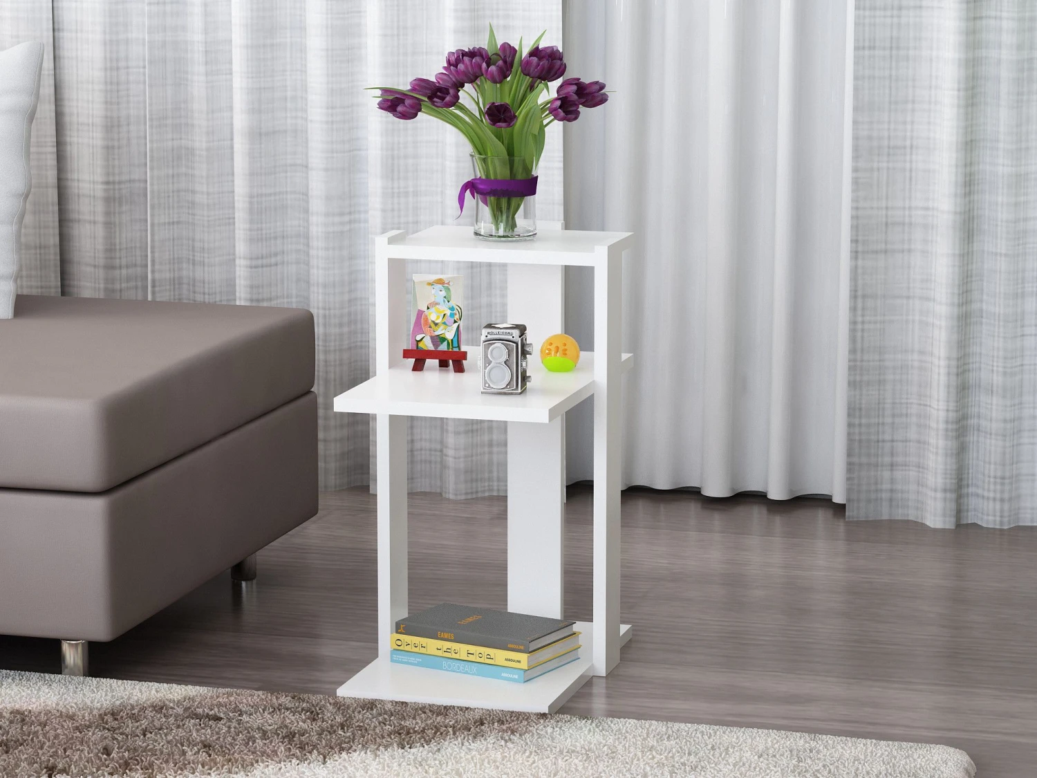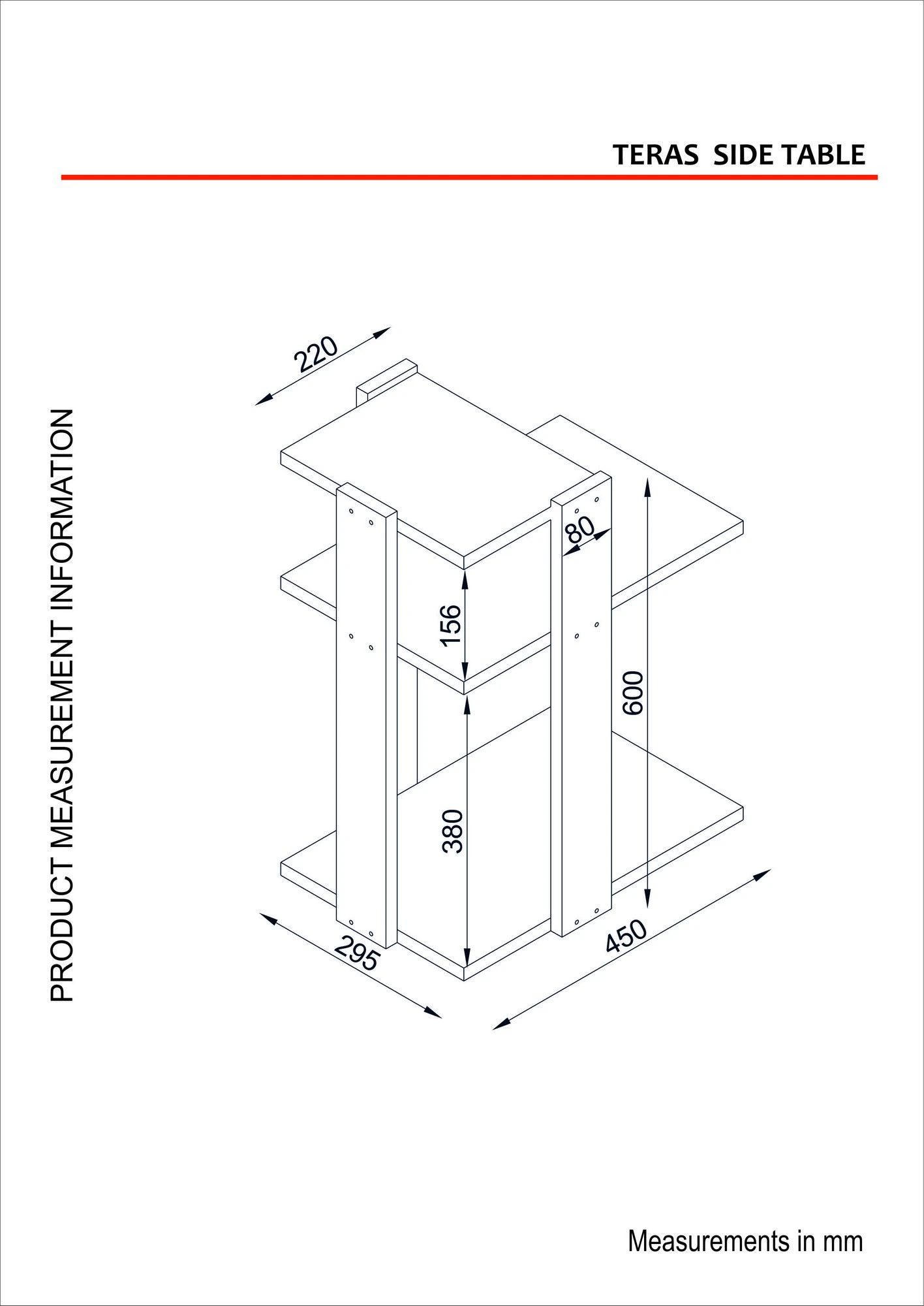 Tera Home Bijzettafel is een wit gemelamineerd spaanplaat tafeltje met een dikte van 18 mm. Hij is 45 cm breed, 60 cm hoog en 29 cm diep.