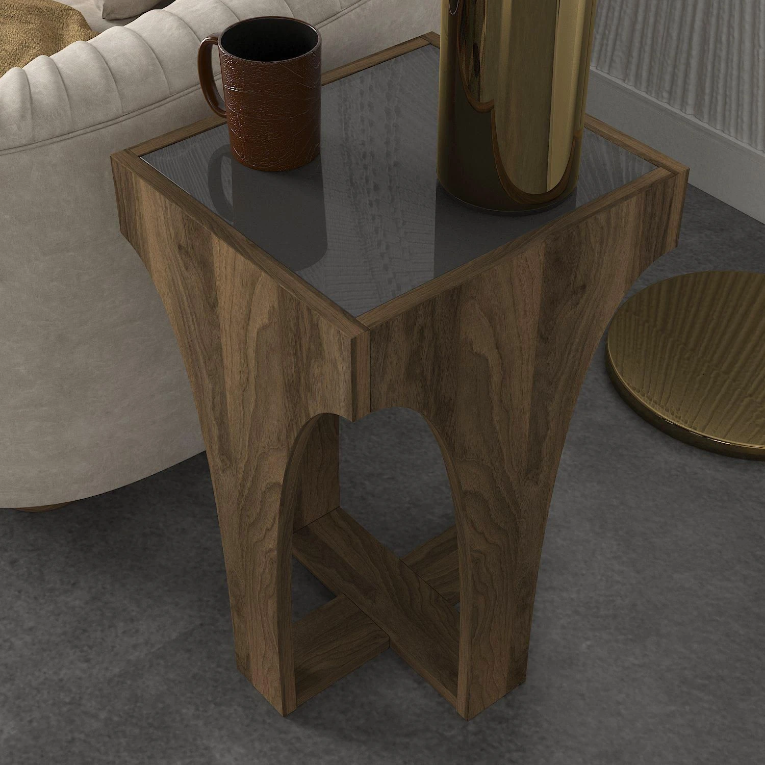 Tera Home Bijzettafel – 18 mm dik gemelamineerd spaanplaat met een stevig metalen frame, stijlvolle walnoot antraciet kleur en 37″ breedte