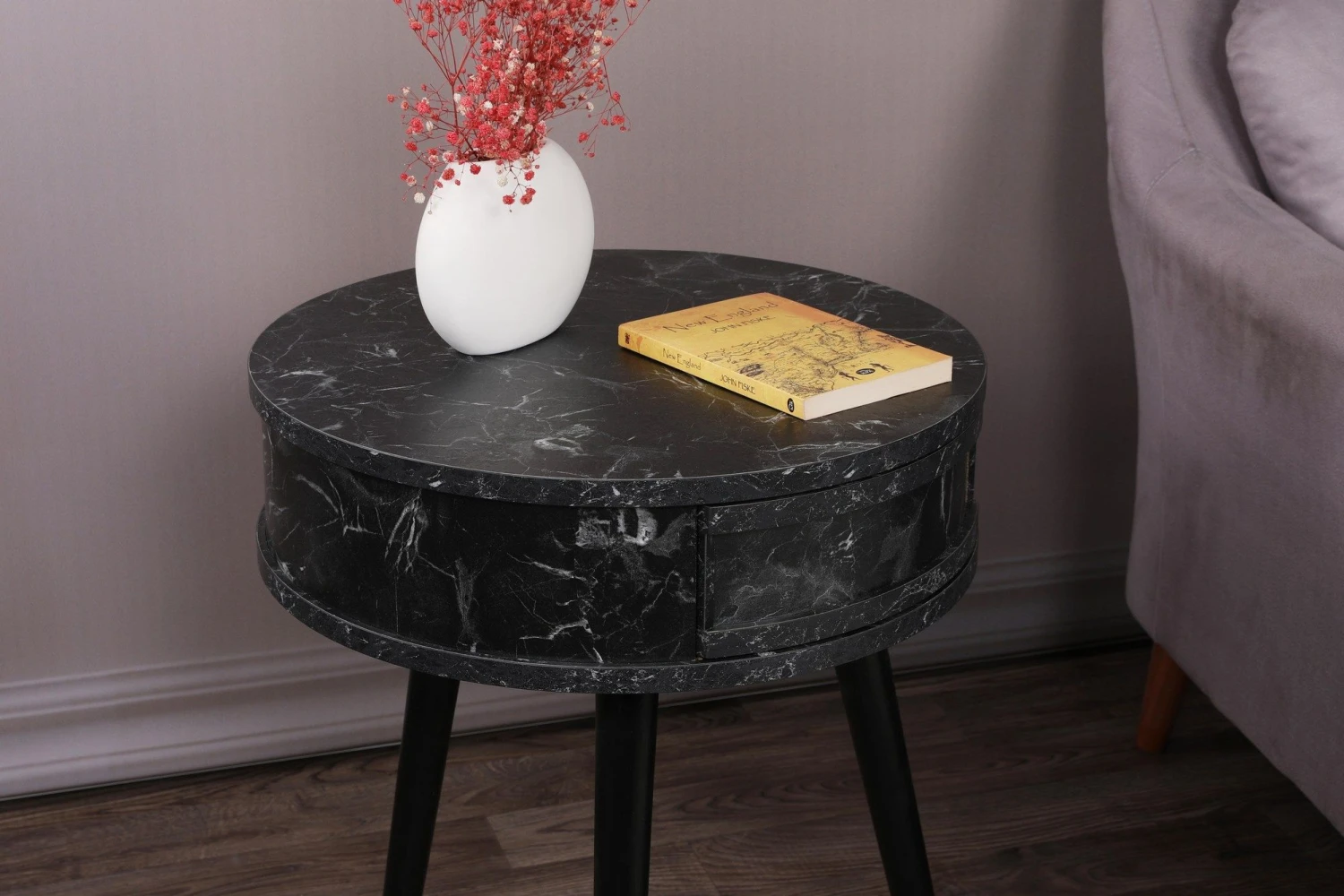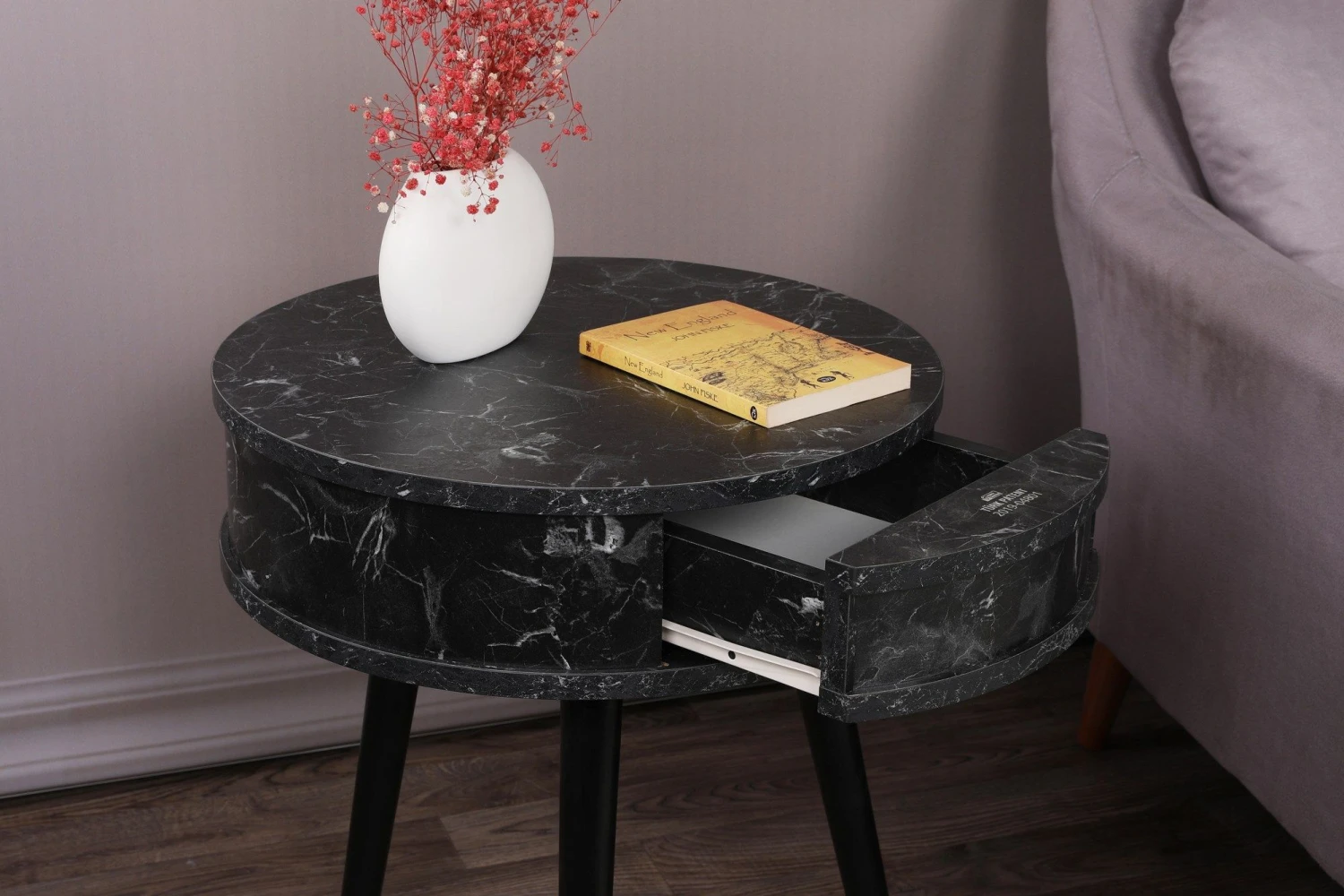 Vella Bijzettafel | Houten Frame | Melamine Bovenblad | 51cm Diameter | Zwart