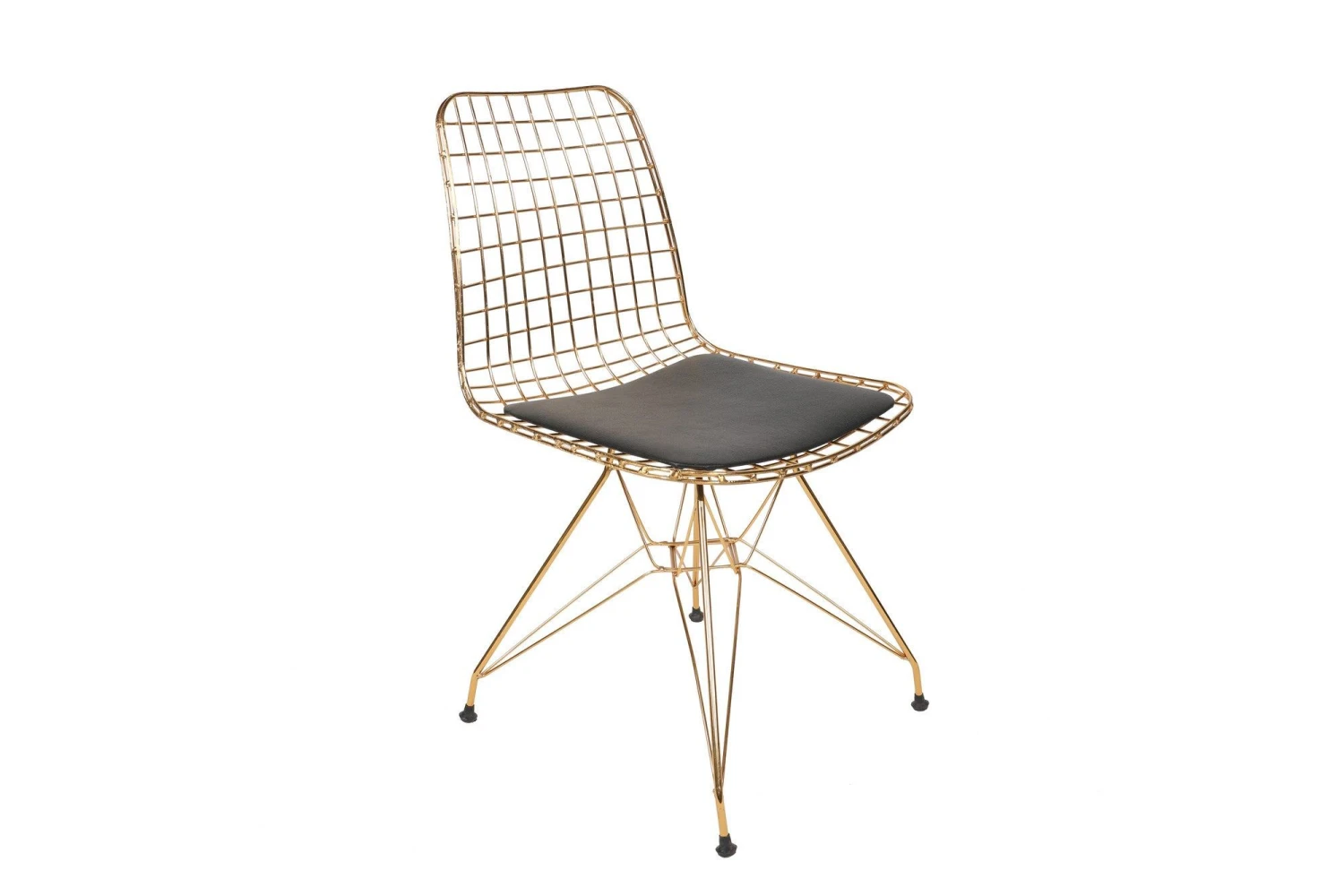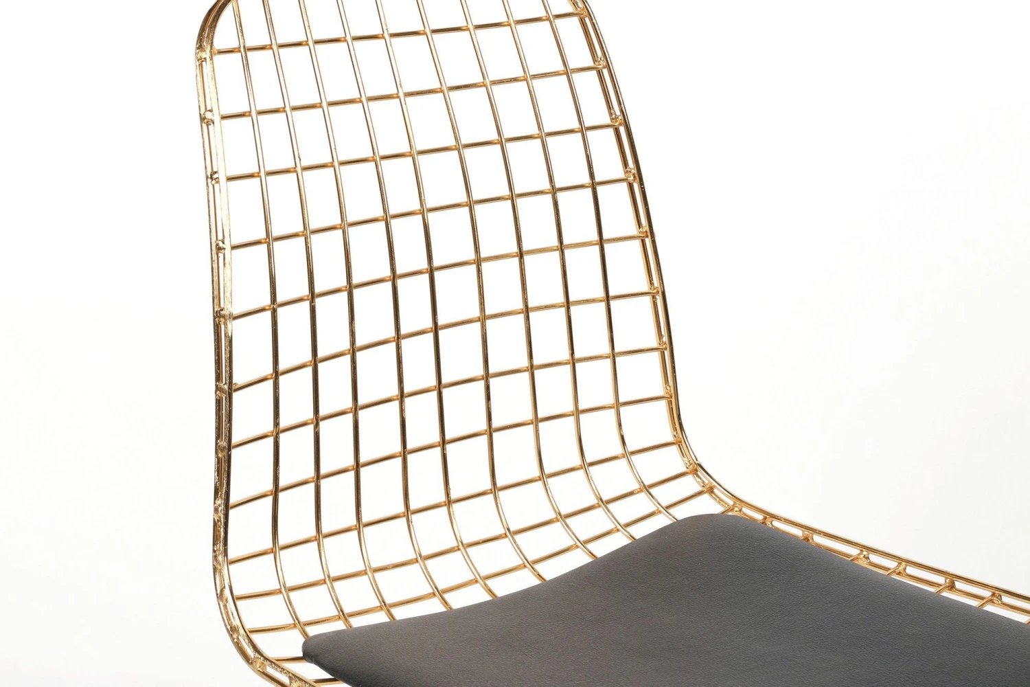 Vella Stoel Set: 2 elegante stoelen met een stevig 100% metalen frame, luxe leren zitting en een stijlvolle gouden kleurstelling. Breedte: 46cm, Hoogte: 81cm, Diepte: 42cm
