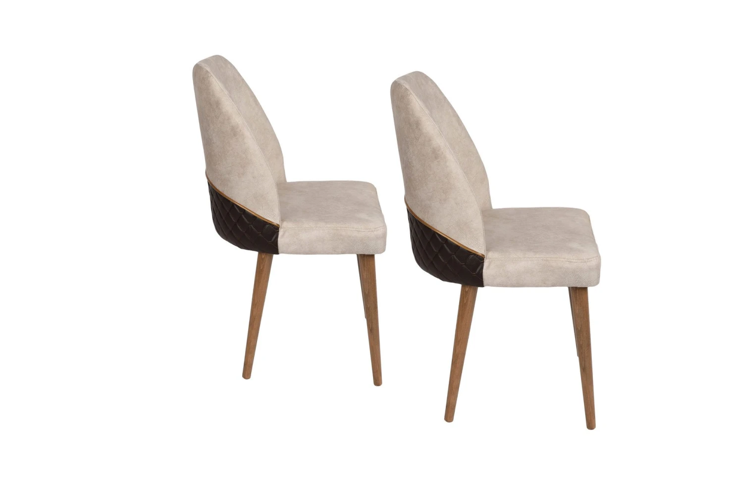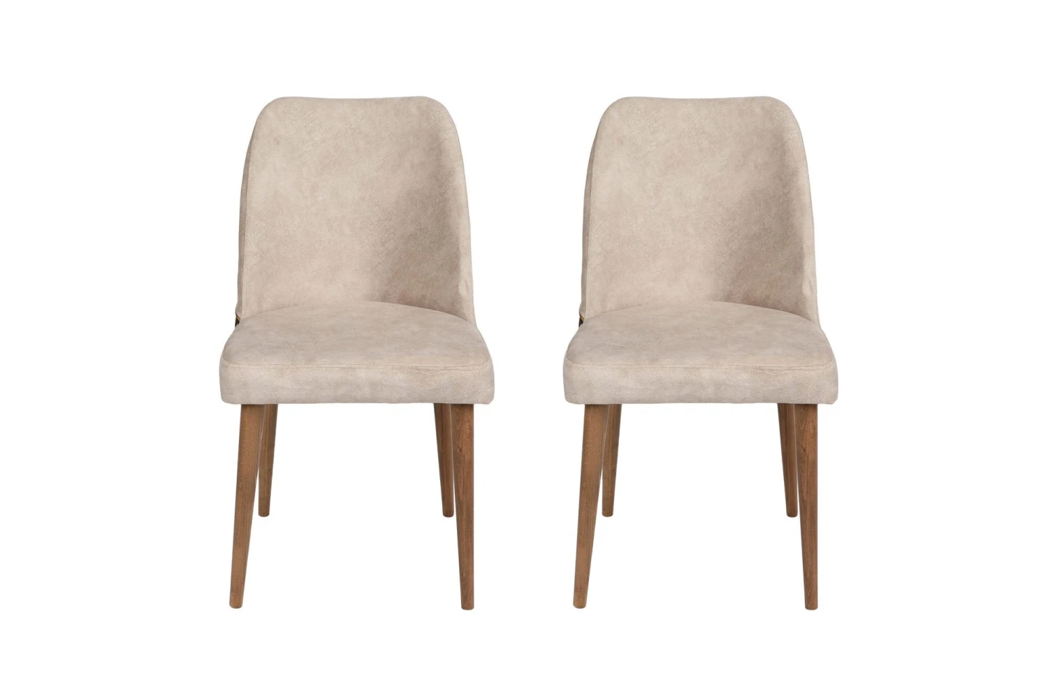 Vella Stoelset (2 Stuks) heeft een duurzaam metalen frame, een luxe zitting van fluweelstof of kunstleer, poten van haagbeuk en een crèmekleurige walnoot. Met een breedte van 50 cm, hoogte van 90 cm, diepte van 49 cm en een draagvermogen van 160 kg.